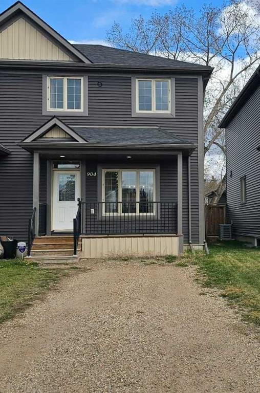 Welcome to this beautifully maintained 2018 semi-detached 2-storey duplex, ideally located just steps from Wainwright elementary school, downtown shopping, restaurants, and the scenic Wallace Park. This bright and modern 3-bedroom, 2-bath home is move-in ready and perfect for families, professionals, or anyone looking to enjoy convenience and comfort in one great package. Step inside to a stunning open-concept main floor featuring 9-ft ceilings, fresh paint, luxury vinyl plank flooring, and pot lights throughout. The spacious living room is filled with natural light thanks to a large picture window. The heart of the home is the gorgeous kitchen, boasting rich espresso cabinetry, stainless steel appliances, a breakfast bar, and ample counter space—ideal for both everyday living and entertaining. A stylish 2-piece powder room completes the main floor. Upstairs, you’ll find two cozy bedrooms plus a generous primary bedroom, all served by a bright 4-piece bathroom with a large window for plenty of natural light. The finished lower level features a large family room—perfect for movie nights or playtime—and a dedicated laundry area. Enjoy outdoor living with a charming front veranda, private fenced backyard, and a back deck ideal for summer barbecues or relaxing evenings. A single detached heated garage adds convenience and comfort year-round. Don’t miss this opportunity to own a home that blends modern style, thoughtful design, and a location that’s close to everything you need! Book your private showing today!