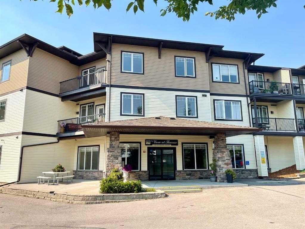 Beautiful One-Bedroom plus Den Condo in a 50+ Community. Move-In Ready! Welcome to this bright and spacious condo; perfectly situated in a well-maintained 50+ building. Located on the second floor, this unit is conveniently located close to the elevator and stairwell, making access easy and efficient. Featuring neutral tones throughout and new beautiful vinyl plank flooring; this condo offers a clean modern feel ready to suit any style. The open-concept kitchen and living room are flooded with natural light from large windows. The living room opens onto a sunny west-facing deck; ideal for relaxing with your morning coffee or evening sunset views. The primary bedroom is spacious and includes a four-piece ensuite; while a second three-piece bathroom houses in-suite laundry for added convenience. The den serves as a great multipurpose area as it is the perfect space for an office or craft room. Lifestyle is built into this building with the Theatre Room(3rd floor), Social Room (2nd Floor) Guest Suite (2nd Floor) for out of town guests and Recreation Room (Main Floor) - including shuffle board, pool table, wet bar and fireplace. There is one assigned parking space and one assigned storage locker. This condo complex sits on beautiful manicured grounds within a private secure fenced area. You are close to restaurants, shops, walking paths and Sunshine Lake. Enjoy life and all it has to offer when living at “The View At Sunrise”.
