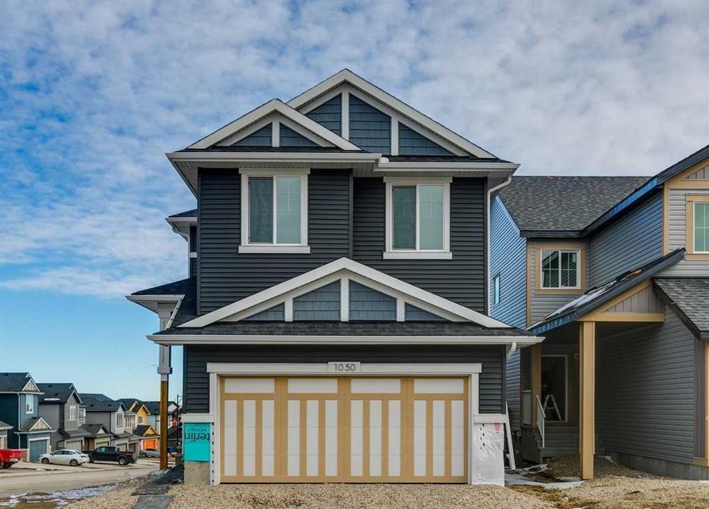 The Damon model features a 9' knockdown ceiling on the main floor and a 9' basement ceiling, offering spacious living throughout. The executive kitchen is equipped with a gas cooktop, built-in stainless steel appliances, undermount sink, water line to fridge, walk-in pantry, and chimney hood fan. A main floor flex room provides additional versatility. Quartz countertops with undermount sinks are found throughout the home, while Luxury Vinyl Plank (LVP) flooring is featured on the main floor and all wet areas. The great room is highlighted by an electric fireplace with a painted ledge. The upper floor features a bonus room, and the 5-piece ensuite offers a walk-in shower with tiled walls and bench, soaker tub, dual undermount sinks, and private WC. Stainless Steel Washer and Dryer and Open Roller Blinds provided by Sterling Homes Calgary at no extra cost! $2,500 landscaping credit is also provided by Sterling Homes Calgary until July 1st, 2025.