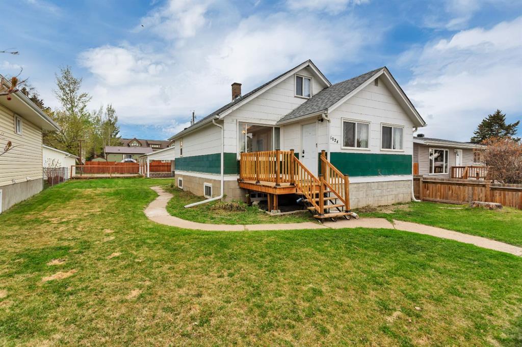 Charming and well-maintained older home with modern updates, just steps from schools and downtown amenities! This 1.5-storey home features fresh paint, vinyl flooring, and updated light fixtures on the main floor, which includes a cozy living room, kitchen/dining area, two bedrooms, and a 4-piece bathroom. The upper loft (not included in square footage) offers versatile space with 6' ceilings — ideal for kids' bedrooms, a home office, or a play area. The full basement is partially finished with a 1-bedroom suite, laundry, and mechanical area. Recent upgrades include some newer windows, a new hot water tank, new electrical panel and a new furnace blower motor. Roof shingles and vents were replaced in March 2025. Enjoy a large fenced yard, single detached garage, carport, and extra parking pad — plenty of room for vehicles and outdoor living!
