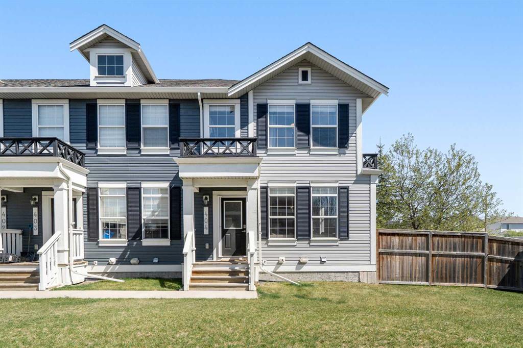 * BACK ON MARKET DUE TO BUYER FINANCING * Welcome to Unit 404 — a rare, fully developed end-unit townhome offering nearly 1,760 sq ft of total living space, tons of natural light, and the largest private yard in the complex. With 3 bedrooms, 2.5 bathrooms, and thoughtful updates throughout, this home delivers comfort, space, and style in one of Airdrie’s most convenient locations. The main floor features 9' ceilings and an open-concept layout with a spacious living area, dining room, and kitchen equipped with stainless steel appliances (including a new dishwasher in 2024), a granite breakfast bar, and a full pantry for extra storage. As a bright corner unit, the home is flooded with light — your plants (and mood) will thrive here. Central A/C keeps things comfortable through the summer months. Upstairs, you'll find a generous primary bedroom that fits a king-sized bed and includes a walk-in closet, along with two additional bedrooms and a well-appointed 4-piece bathroom. The fully developed basement adds even more living space with a large, open rec room — perfect as a guest area, second living space, home gym, office, or whatever else you need — plus a 3-piece bathroom, laundry, and plenty of storage. Step outside to your incredible backyard — the biggest in the complex — beautifully landscaped, fully fenced, and complete with a private deck. It’s the perfect spot for lounging in the sun, letting pets roam, entertaining friends, or simply enjoying a little outdoor breathing room. The home also comes with two parking stalls (one assigned and one communal access) for added convenience. Located in a well-managed, pet-friendly complex, residents enjoy access to an on-site playground and a rentable amenity center for hosting gatherings. You're just minutes from schools, shopping, and some of Airdrie’s best natural walking trails. This is one of the most complete offerings in the complex — spacious, sunny, and move-in ready.