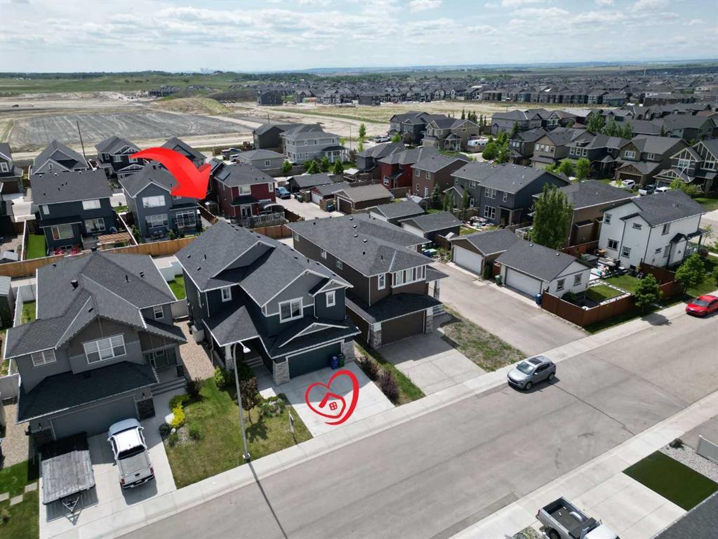 Step into this stunning former McKee Homes showhome, perfectly situated in the sought-after family community of Ravenswood—just minutes from local schools and the vibrant Kingsview Market. This beautifully maintained, one-owner home is loaded with high-end upgrades and thoughtful design features throughout. The main floor boasts wide-plank laminate flooring, soaring 9-foot ceilings, and an abundance of natural light. The elegant great room is anchored by a cozy gas fireplace, while the bright dining area opens onto a sunny south-facing backyard complete with a brand new composite deck and maintenance-free fencing—ideal for entertaining and family living. At the heart of the home is a designer kitchen that’s sure to impress, featuring full-height white cabinetry, quartz countertops, a large central island, walk-through pantry to the mudroom, and premium stainless steel appliances from Samsung and KitchenAid, including a convection oven. Upstairs, you'll find four spacious bedrooms, including a serene primary suite with a large walk-in closet and a spa-inspired ensuite offering dual vanities and a separate shower. A central bonus room provides the perfect flex space for a media area or kids' play zone. You'll also appreciate the convenience of an upstairs laundry room with built-in shelving. The unspoiled basement is filled with potential, featuring oversized windows and roughed-in plumbing for a future bathroom. Additional highlights include an oversized, drywalled, and heated garage, custom built-in lockers in the mudroom, and a charming covered front porch. Enjoy easy access to a paved back lane and a fully landscaped yard with PVC fencing and numerous trees and shrubs. Enjoy the huge stone patio in the summer and then relax inside with the AC. Located just a short walk to both Airdrie Francophone and Heloise Lorimer schools, with quick access to Sierra Springs shopping, CrossIron Mills, and Calgary—this is the perfect family home in one of Airdrie’s most desirable communities.