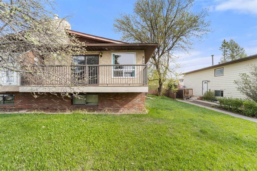 Starter Home or investment property. This 962 square foot half duplex is some tlc away from being the perfect property. The main floor has a kitchen, dining room and a good sized living room which has a wood burning fireplace. Off the living room is a large front south facing deck. A 4 piece main bath finishes this level. In the finished basement their are 2 more bedrooms, a 3 piece bath, a large family room, the laundry room and the mechanical room. Their is a 21 x 15.6 detached garage with back alley access and room beside for parking. The yard is landscaped and this property is ready for your renovation ideas.