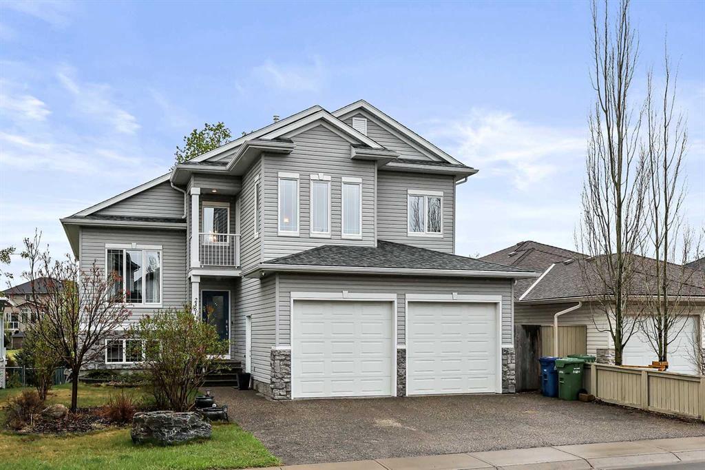 Here is the one you have been waiting for! Backing onto the 3rd hole of the Woodside golf course this McKee, custom built, walk-out bi-level features over 2900 sq ft of developed space. As you enter the property you are greeted by the large tiled front foyer leading you up to the massive open concept main floor with gleaming hardwood flooring, soaring 16-foot ceilings, and large floor to ceiling windows flooding the property with natural light. Gorgeous kitchen with crisp white cabinetry, granite countertops, tile backsplash and flooring, upgraded black appliances with gas range, corner pantry, and large center island with raised bar ledge. Open to the dining and living room with vaulted ceilings, cozy tile faced gas fireplace, and garden door out to the wall-to-wall South facing balcony with stunning views of the golf course! Great spot to unwind after a long day with a glass of wine and cheer on the golfer's putts. Large main floor primary bedroom escape with vaulted ceilings, built-in speakers, walk-in closet, and spa-like ensuite with corner jetted tub and double, dual headed walk-in glass shower. Head up a few stairs to the loft with two large bedrooms/bonus room with access door out to another balcony facing the front. An adjoining full 4-piece bathroom with tile flooring and glass block accent complete this upper level that's great for kids, home office, or guest space. A main floor den and large well-appointed laundry room with rough ins for 2-piece bathroom finish off the upper floors. Head downstairs to the fully finished walk-out basement with 9 foot ceilings and comfortable in-floor heating. Featuring new laminate flooring and a large family/rec room with access out to the stamped concrete patio in the fully fenced and landscaped sunny South backyard. Large lot and big mature trees provide a tranquil backyard oasis complete with a hot tub area. Another two good sized bedrooms and another full 4-piece bathroom complete this bright lower level. An oversized 24 ' x 21 ' garage with infloor heating and added 10 ' doors for your larger vehicle needs and lots of storage. Lots of recent updates including New Furnace (2024), New Carpet (2025), New Laminate Flooring (2025), Upgraded Electrical Panel (2017). All this located in the highly desirable mature neighborhood of Fairways surrounded by schools, greenspaces, playgrounds, shopping and of course the Woodside Golf Course! Quick access in and out to major thorough routes making commuting anywhere a breeze. Rarely do homes in this location come on the market!