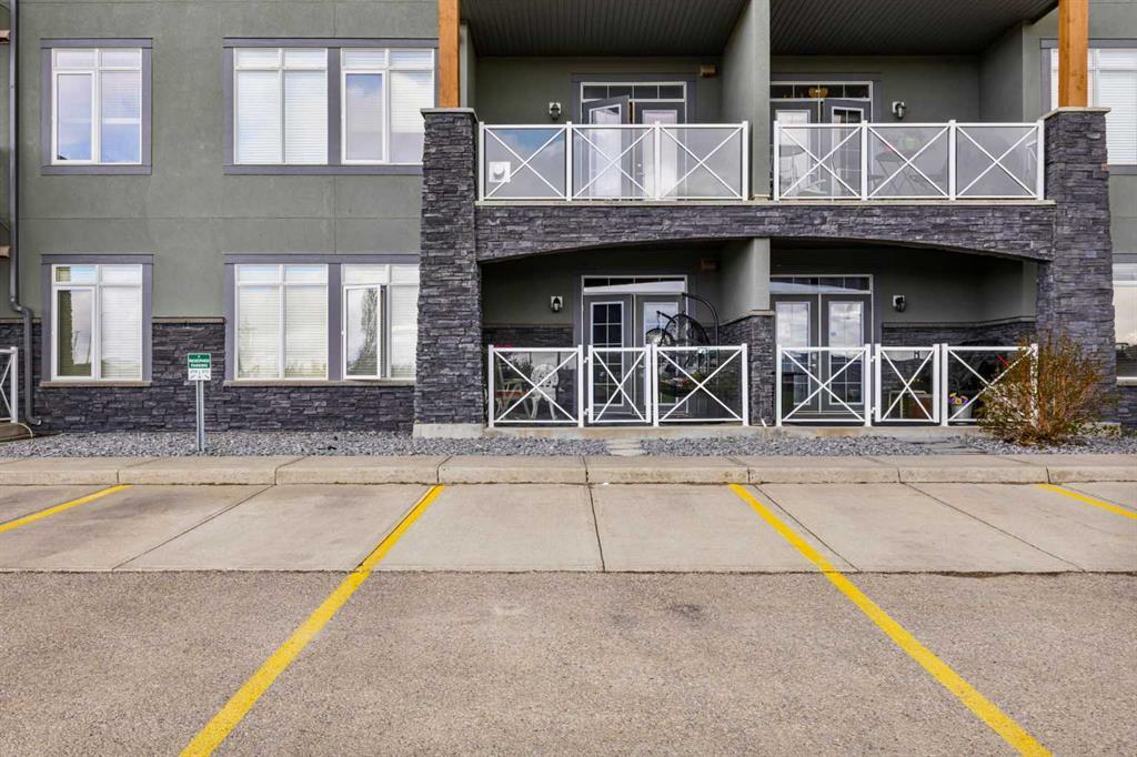 NEW PRICE! A Rare Gem with TWO Titled Parking Spots & Lake Views! Welcome to Unit #105 at The Savana in beautiful Strathmore — a spacious and stylish one-bedroom, one-bathroom condo that offers the perfect blend of luxury, comfort, and convenience. This exceptional ground-floor unit stands out with two titled parking stalls — one heated underground with additional storage, and the other directly outside your private patio for easy access. Step inside to a bright, open-concept layout featuring a large great room with a cozy fireplace, perfect for relaxing evenings. Soft carpet flows through the main living area, leading into a well-appointed kitchen with granite countertops, stainless steel appliances, a garburator, extended-height cabinetry, and a sit-up bar — ideal for casual dining or entertaining. Enjoy the convenience of in-suite laundry and a spacious foyer, while the bedroom offers a walk-through closet into the elegant 4-piece bathroom, creating a functional and private retreat. Step out onto your covered patio and take in serene views of the lake, with access to year-round recreation including fishing, canoeing, paddle boarding, and picturesque walking paths. Located just minutes from shopping and with easy access in and out of Strathmore, this unit is perfect for professionals, downsizers, or anyone looking for comfort, style, and unbeatable value. Don’t miss this rare opportunity — book your private showing today!