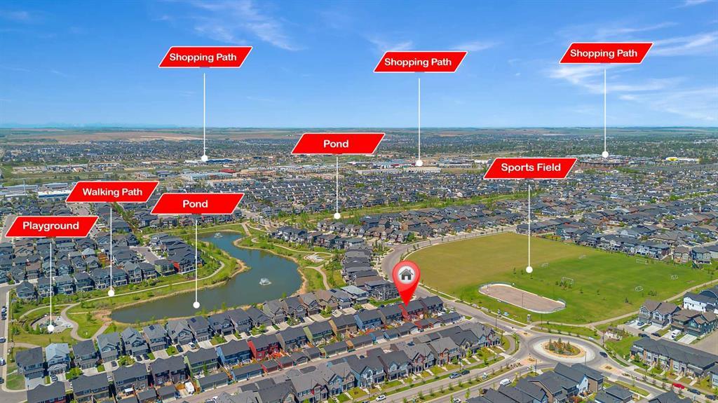 Step Inside Your Dream Home by Avi! Welcome to a truly exceptional show home by Homes by Avi, where every detail has been thoughtfully designed for modern living. Imagine having a dedicated private den/flex room right off the main living area – perfect for a quiet home office, a vibrant playroom, or even easily convertible into a fourth bedroom! The heart of this home is undoubtedly the spacious kitchen, a culinary delight featuring upgraded stainless steel appliances and new Stove, ample pot lights, and stylish 42" upper cabinetry. You'll love the convenience of pots and pans drawers and the expansive 8 ½-foot quartz kitchen island, ideal for meal prep or casual gatherings. The entire main floor boasts a sophisticated feel with knock-down ceilings and impressive 9-foot main floor ceilings, creating an airy and open ambiance. The open-concept living area is perfect for entertaining, with a cozy fireplace in the living room and a generous eating area that can easily accommodate friends and family. Enjoy the seamless flow of beautiful laminate and tile flooring throughout the main level. Upstairs, comfort meets convenience. All bathrooms, along with the large upper-floor laundry room, are adorned with tile floors and include a front-load washer and dryer. Your private retreat awaits in the master bedroom, complete with a luxurious 5-piece ensuite featuring a beautifully tiled shower and a separate, inviting soaker tub – your own spa-like oasis. This home offers even more unexpected luxuries, including stylish blinds, refreshing air conditioning, and convenient ceiling speakers for an immersive audio experience. Step outside to your private rear deck, designed for relaxation with a privacy wall and a handy gas line for your BBQ. The best part? There are NO condo fees! This prime location offers incredible access to outdoor enjoyment. You're just steps away from a vibrant green space featuring a soccer field for active play and an ice skating rink for winter fun. A picturesque pond with a playground is also nearby, offering another wonderful spot for leisurely strolls and family adventures.