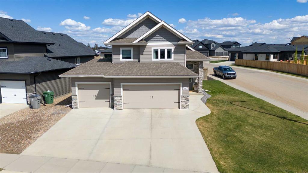 Welcome to this stunning home offering over 1,400 sq ft of beautifully designed living space. Located in the desirable Lakeside Estates, this modified bi-level showcases an open-concept layout that’s perfect for entertaining. Step into the spacious foyer and enjoy the airy feel provided by vaulted ceilings throughout the kitchen, dining, and living areas. The modern kitchen features quartz countertops, a corner pantry, and sleek stainless steel appliances. The primary suite is a true retreat, complete with a generous walk-in closet and a private 3-piece ensuite featuring a large walk-in shower. The fully finished basement offers a cozy family room with a large projector screen—ideal for movie nights and relaxing with family and friends. Step outside to enjoy the beautifully landscaped backyard, which includes a deck, hot tub, fire pit area, and a storage shed. Additional features include central air conditioning and a heated triple attached garage—perfect for our Canadian winters. This home clearly shows pride of ownership and is move-in ready. Check out the 3D virtual tour!