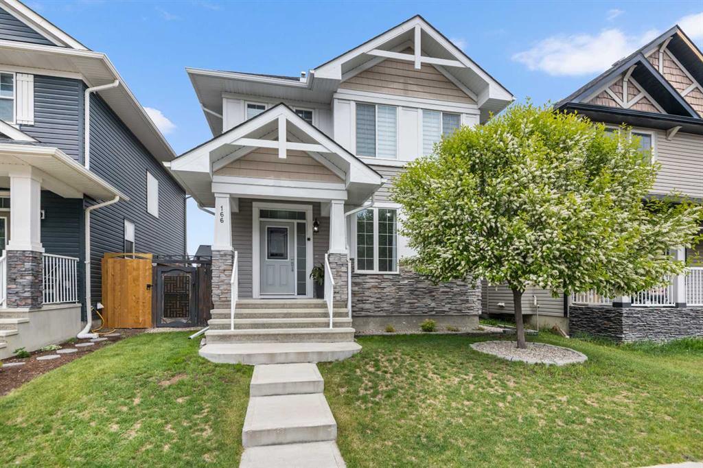 Stunning design and elegant upgrades make this Bayside of Airdrie home a standout. ***UPGRADES*** include Oversize Double Garage (2022), all Wi-Fi Enhanced Refrigerator, Stove, Microwave and hood fan (Dec 2023), full length kitchen cabinet (2023; $3000), most of plugs & switches, a front door glass insert and frosted the surrounding glass around the door, floating TV stand and an electrical outlet to the family room wall, modern window blinds from the stairs up, some light fixtures for a modern look, secured fencing (2023) for children, Gazebo, repainted the deck, repainted the house and exterior trims (2023).A beautiful Mayday tree shades the south-facing front yard, adding curb appeal to the tidy garden beds and covered front porch. ***MAIN LEVEL*** (FAMILY AREA, KITCHEN, DINING, POWDER ROOM, PANTRY, CLOSETS) Transoms, sidelight windows, and a new glass insert in the front door brighten the entryway. A stylish living room with feature walls, laminate plank floors, and tons of NATURAL LIGHT creates a chic vibe that begs you to relax and enjoy the scenery. Down the hall, the gorgeous open concept was made for family time and gatherings. A kitchen in dark tones strikes the perfect balance of modern and inviting, with cozy subway tile backsplashes and a five-panel PANTRY door alongside sleek granite counters and brand-new stainless appliances. A new floor-to-ceiling cabinet creates additional functionality. An EAT-UP ISLAND is the hub that allows conversation to flow while you prep a meal or wash up as you entertain. Unique lighting and 9 FT. CEILINGS feel refined, and small details like plugs and switch plates have been updated too. The dining area is filled with sunlight through SLIDING PATIO DOORS. The family room is comfortable and aesthetic with LARGE WINDOWS, new drapes, a floating entertainment shelf, and an elevated outlet for a cordless visual. Closets are plentiful, and a powder room conveniently finishes this floor. ***UPPER LEVEL*** Upstairs, a serene primary suite exudes charm with a plank accent wall and big windows. A WALK-IN CLOSET is a desirable feature, and the ensuite is luxurious, complete with a glassed-in shower, DUAL SINKS, and a separate wash closet. Two more generous bedrooms are an ideal family layout, sharing the well-appointed main bathroom. A linen closet and laundry on this storey are handy design choices, and modern new blinds are in all the upstairs rooms. ***BASEMENT*** Downstairs, the unfinished basement is insulated and has two windows, plus a ROUGH-IN FOR A BATHROOM and CENTRAL VAC. The furnace was serviced this year so all you need to do is bring your ideas. ***EXTERIOR*** Your backyard paradise begins with a freshly painted deck, where a new GAZEBO offers shade, privacy, and bug-free dining, and the HOT TUB beckons you to unwind. The wood on the house has also been repainted. NO-MAINTENANCE LANDSCAPING and new fencing on one side frees you up from yard work, and the oversized double garage has room for off-street parking.