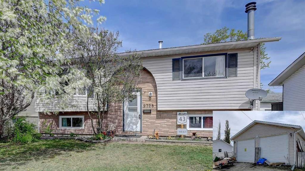 Located just 10 minutes from Grande Prairie, this updated bi-level home in Wembley 26x36 HEATED SHOP/GARAGE with in-floor heating offers a perfect mix of modern comfort and practical space, featuring a massive 26x36 heated shop with in-floor heating, 220V plugs, exhaust fan, and lit attic storage. Inside, the home is bright and welcoming with light grey paint tones and vinyl plank flooring throughout the main level. The kitchen, renovated includes white cabinetry to the ceiling, soft-close cupboards, and a door leading to a vinyl deck—ideal for outdoor relaxation. The main level also has two bedrooms and a beautifully updated bathroom, while the basement offers two additional bedrooms, a cozy wood-burning fireplace, another bathroom, laundry area, and ample under-stair storage. Outside, enjoy the landscaped yard, a 20x40 gravel RV parking pad, and the impressive shop. Other updates include windows—making this move-in ready property an outstanding find.