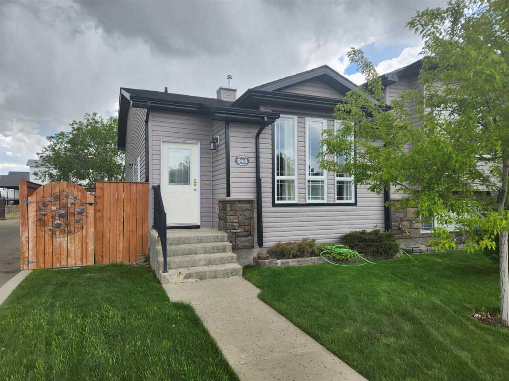 A lovely home in a quiet and convenient location! Impressive open floor plan with hardwood flooring and vaulted ceilings. The dining nook accesses the private BBQ side patio. The beautiful fenced backyard has a concrete parking option off the alley if desired, and has a lovely deck and pergola space to enjoy. Neighbourhood amenities include nearby shopping and Legacy Regional Park. Paved lane provides separation from neighbours. Approximately 1300 sq feet of developed living, and more potential in the basement, with roughed in plumbing for another bathroom.