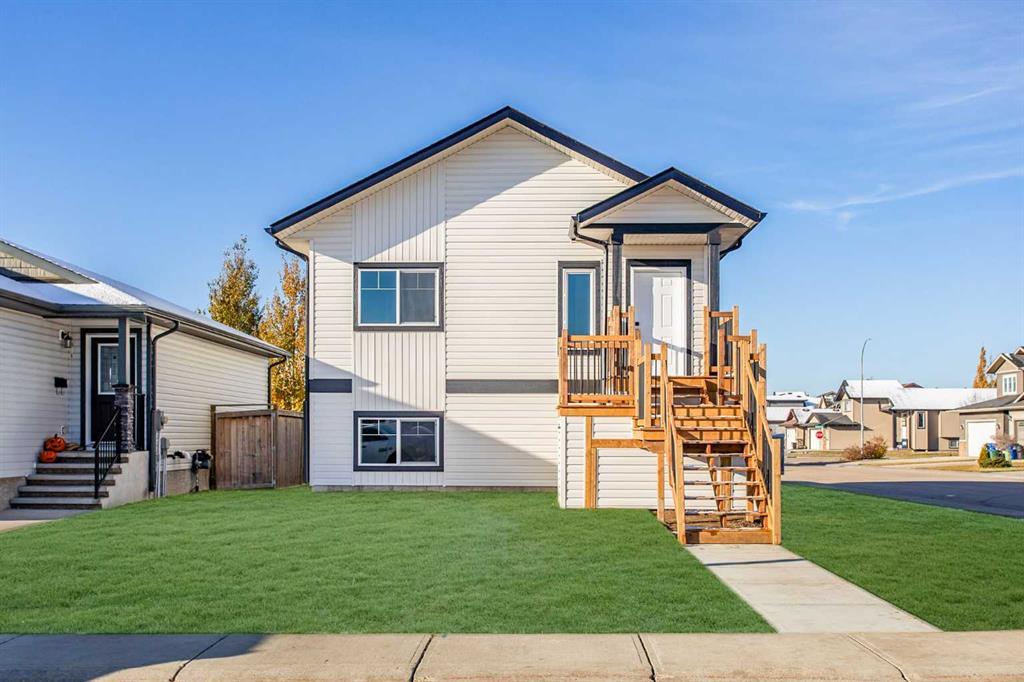 Take a look at this brand new raised bungalow, ready for immediate possession. Have an RV you'd like to park at home? On this corner lot, there is potential to add RV parking with convenient accessibility. The main floor features vinyl plank throughout (no carpet at all in this home!). The kitchen features white cabinets, a large island, stainless steel appliances and eating bar at island for additional seating. There's a garden door out to the deck & yard. You'll also find two bedrooms and two full bathrooms on the main level. One of these bedrooms is the primary with a walk-in closet, built in drawers, and a 4pc. Ensuite bathroom. Downstairs, is a large family room with beautiful large windows that are all above grade (no window wells), two more bedrooms, and a 3pc. Bathroom with custom tiled shower and glass wall/door. One of the bedrooms downstairs has built in cabinetry - perfect for home office use as well or as a traditional stylish feature for a bedroom. Other features include: washer/dryer are included, in-floor heating in basement roughed in, new home warranty. There's also under the deck storage shed out front. Perfect to store the lawn mower or patio furniture. Grass will be complete. Garage can be added for extra cost.