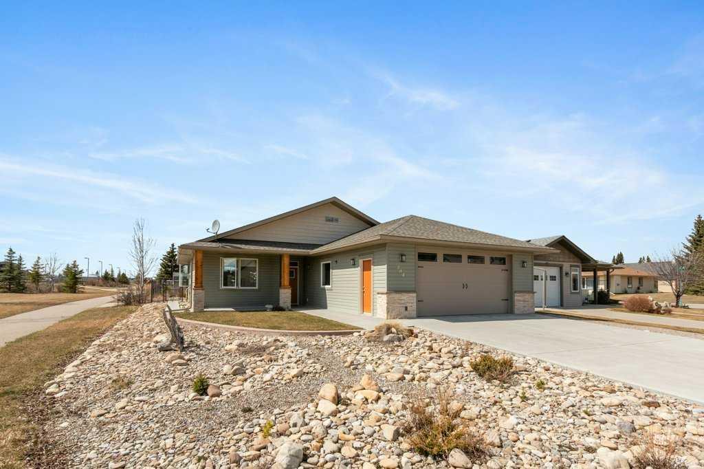 Discover the perfect blend of comfort and convenience in this ideally sized 2-bedroom, 1-bath bungalow with a spacious double attached heated garage, located in a desirable newer neighborhood in Sundre—just a short stroll from the creek and along a pathway. Step inside to find a bright and open main floor featuring soaring ceilings, luxury vinyl plank flooring throughout (with quality carpet in the bedrooms), and in-floor heating for year-round comfort. The living room centers around a beautiful three-sided gas fireplace, perfect for cozy evenings. The stylish kitchen is filled with natural light and boasts a large island, ample cabinetry, large pantry and generous windows. The adjacent dining area features charming window shutters, adding to the home's warm character. Step outside to enjoy your morning coffee on the covered front east facing porch or host summer BBQs on the west facing covered concrete back patio. You'll love the oversized laundry room, enhanced by a solar tube for natural lighting. The fully landscaped, low-maintenance yard (zero-scaped front and back) includes a handy storage shed, a large side gate with space for RV or trailer parking, and a wide and long front parking pad. Nestled beside a scenic walking trail and backing onto greenspace, this home offers both privacy and access to nature. Sundre is a welcoming community at the gateway to Alberta's West Country, offering a rural hospital, indoor pool, grocery stores, restaurants, and even a Tim Hortons—all just minutes away. Don't miss this fantastic opportunity—book your showing today!