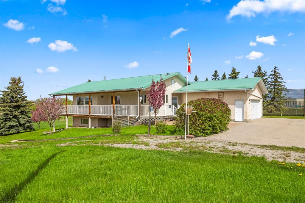 Endless opportunities and investment possibilities on this beautiful little in town Acreage!! This beautifully kept and well-maintained nearly 1500 square-foot acreage bungalow is sitting on just under 4 acres that is inside the town limits! Step up onto a wrap around porch that walks into a great big open concept, kitchen, dining, and living area. The main floor also hosts two bedrooms. The master is equipped with a three piece en suite and walk-in closet. It also has upstairs laundry and leads into the two car attached garage. Downstairs in the walkout basement you will find a giant great room another four piece bathroom and a massive third bedroom. This home was very meticulously kept over the years and is perfect to raise a family in. Outside on the 4 acres there are endless opportunities and stunning views of the school and the surrounding communities.