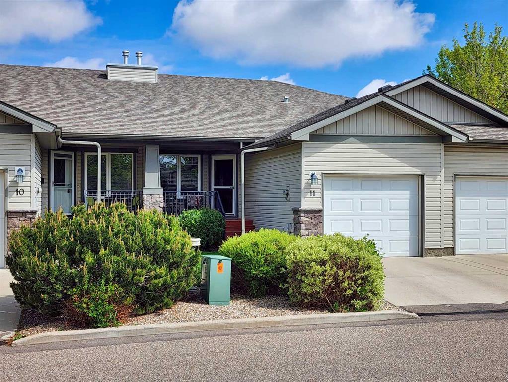 Discover adult living in this well-maintained 40+ half duplex condo in Aspen Village! The main living spaces feature elegant hardwood floors, and the dining room opens directly onto a wooden deck, providing easy access to the partially fenced backyard. The main bedroom offers a walk-in closet and a private 4-piece ensuite, while a convenient 2-piece bathroom is also located on the main floor. Enjoy the practicality of main floor laundry with stackable appliances. The property includes an office/family room on the main level, a fully finished basement with a spacious recreation room, a wet bar and a cozy corner gas fireplace alongside a 3-piece bathroom featuring a standup glass shower. An attached single car garage provides added convenience. This home overlooks Legacy Park, offering a serene view, and is surrounded by parks and green spaces, with all amenities just a short distance away. Don’t miss your chance to view this property!