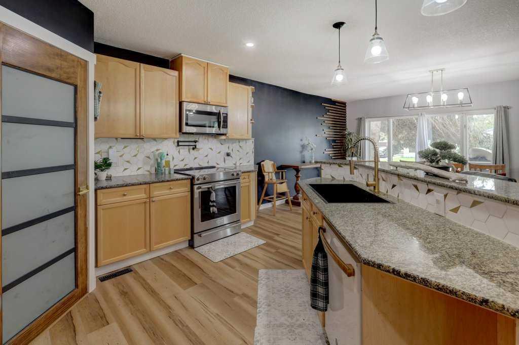 ~ PRICE IMPROVEMENT ~ Welcome to 816 Bay Road, nestled in the established and family-friendly community of Brentwood in Strathmore! This beautifully updated home offers 1,870.20 sq ft of comfortable living space, complete with a partly developed basement—a rare bonus in this neighborhood. As you enter, you're welcomed into a spacious foyer with a large closet and a convenient half bath just off to the side. The main floor boasts an open-concept kitchen and dining area featuring granite countertops, newer appliances, and updated flooring, ideal for both everyday living and entertaining. A dedicated office space just off the kitchen makes working from home a breeze. The bright and airy living room is filled with natural light, creating a warm and inviting atmosphere. Down the hall, you'll find a generous primary bedroom, two additional well-sized bedrooms, and a 4-piece main bathroom—perfect for growing families or guests. The home’s layout is smart and family-friendly, offering excellent flow and functionality throughout. Outside, enjoy the benefit of a side parking pad plus additional off-street parking, providing ample space for vehicles or an RV. This move-in ready home has been thoughtfully updated—truly a gem in a mature, central location—don’t miss out!