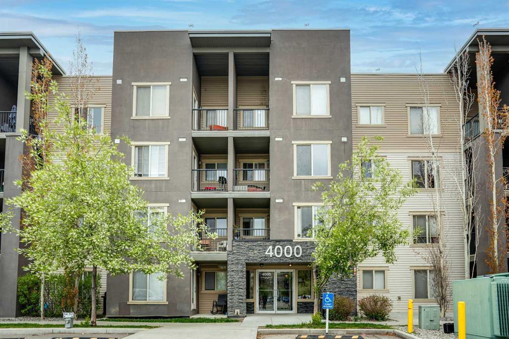 PRICE REDUCED to $254,999, and No CONDO Fee for 4 months. A well-designed, TRENDY unit in the Creekside Crossing complex. Step inside a spacious entryway that leads into a FUNCTIONAL OPEN-CONCEPT Kitchen with stunning Granite Countertops, full-height cabinetry, a stylish tile backsplash, and AMPLE STORAGE / PANTRY; a durable Laminate floors, a SPACIOUS LIVING Room with EXPANSIVE WINDOWS allowing sunny natural light to brighten the interior, provides direct access to your covered balcony. Boasting a SPACIOUS two-bedroom suite with Ample CLOSET Space. The primary bedroom features a Walk-In Closet with a DOOR and Direct ACCESS to the four-piece bathroom - it is designed for the accessibility of guests and the second bedroom. A dedicated In-SUITE Stacked Laundry unit for convenience; well-maintained and FRESHLY PAINTED throughout; a titled, HEATED Underground parking just mere steps from the elevator; several ABOVE-GROUND Visitor parking spaces are readily available for visitors. The CONDO FEES include Heat and Water. This is a well-managed building with a low-maintenance lifestyle in an excellent location. Experience the best of Airdrie living with all the essential amenities you need just minutes away: the nearby shops, grocery stores, URGENT Care & Laboratory services, Library, parks, playgrounds, public transit, restaurants, and more. Easy access to Highway 2 and Stoney Trail. It is a fantastic opportunity to own a space .. this is a ready MOVE-IN unit to be your new home! A Must-see, book your showing today .. P.S: Explore the property from any angle, watch the 3D tour! Enjoy.