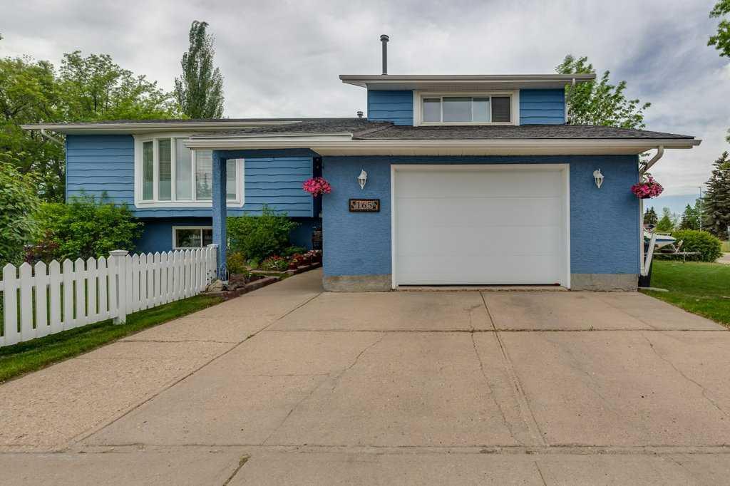 This charming and truly unique home is nestled on a corner lot with undeniable curb appeal—complete with a classic white picket fence and freshly painted blue siding that radiates warmth and character. The beautifully landscaped front, side, and backyard spaces feature mature trees that offer shade and serenity, along with RV storage, a garden shed, and multiple outdoor living zones. Whether you’re soaking up the sun or relaxing in the shade, this property provides the perfect spot. A spacious deck ideal for dining steps down to a cozy firepit area and an inviting lounge space. Inside, the home showcases craftsmanship and detail. Wide baseboards, crown mouldings, and gleaming hardwood floors highlight the quality finishes. The bright, spacious living room flows into the dining area, featuring elegant wainscoting and decorative sliding doors that lead to a charming sunroom with a rustic notched pine ceiling. The kitchen offers ample cabinet space, a free-floating island, and stylish contrasting feature trim. The main floor includes a standout 3-piece bathroom with a stamped tin-style ceiling, floor-to-ceiling tongue-and-groove wood walls, and a vintage-inspired vanity. A generously sized bedroom with lots of natural light and a large closet completes the main level. Just a few steps up, the private primary suite awaits with two large closets and a beautifully designed ensuite featuring a deep soaker jet tub and ornate vanity. Downstairs, you’ll find a large family and recreation area, perfect for both relaxing and entertaining. There is enough room for a pool table and living room space. Two additional bedrooms are located here, one complete with its own 3-piece ensuite and walk-in closet, making it a wonderful guest bedroom or a second primary bedroom with ensuite. Updates include PEX plumbing, a hot water tank (2021), and shingles (2019) and almost all of the windows. The oversized attached heated single garage is a hobbyist’s dream, offering both parking and a workshop space with durable epoxy flooring. This one-of-a-kind, well-maintained home is move-in ready and located in a welcoming, family-friendly neighborhood. A must-see gem that truly feels like home the moment you arrive!