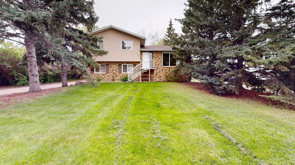 Nestled on 1.06 (70' x 660") beautifully treed acres in the charming Town of Nanton, this meticulously maintained one-owner property offers a rare blend of space, comfort, and functionality. The 2,059 sq.ft. home features a versatile 4-level split design with one additional fully developed level, providing abundant room for family living, entertaining, and storage. Inside, the home showcases a warm and inviting atmosphere with a wood stove insert, updated windows, a spacious laundry and back entrance, and a functional floor plan that includes a wet bar and pool table. Step outside to a 26' x 40' detached garage with 220 power, a separate electrical service, and wood stove heat—ideal for mechanics, hobbyists, or extra storage. The garage also features one 8' and one 10' overhead door for added accessibility. Additional outbuildings include a 13' x 30' workshop and a 22' x 30' covered parking area. The private yard is a true retreat, with mature trees, oversized garden area, underground irrigation, and a large deck perfect for enjoying peaceful evenings. Shingles were replaced three years ago, and the entire property reflects pride of ownership—ready to welcome its next owner.