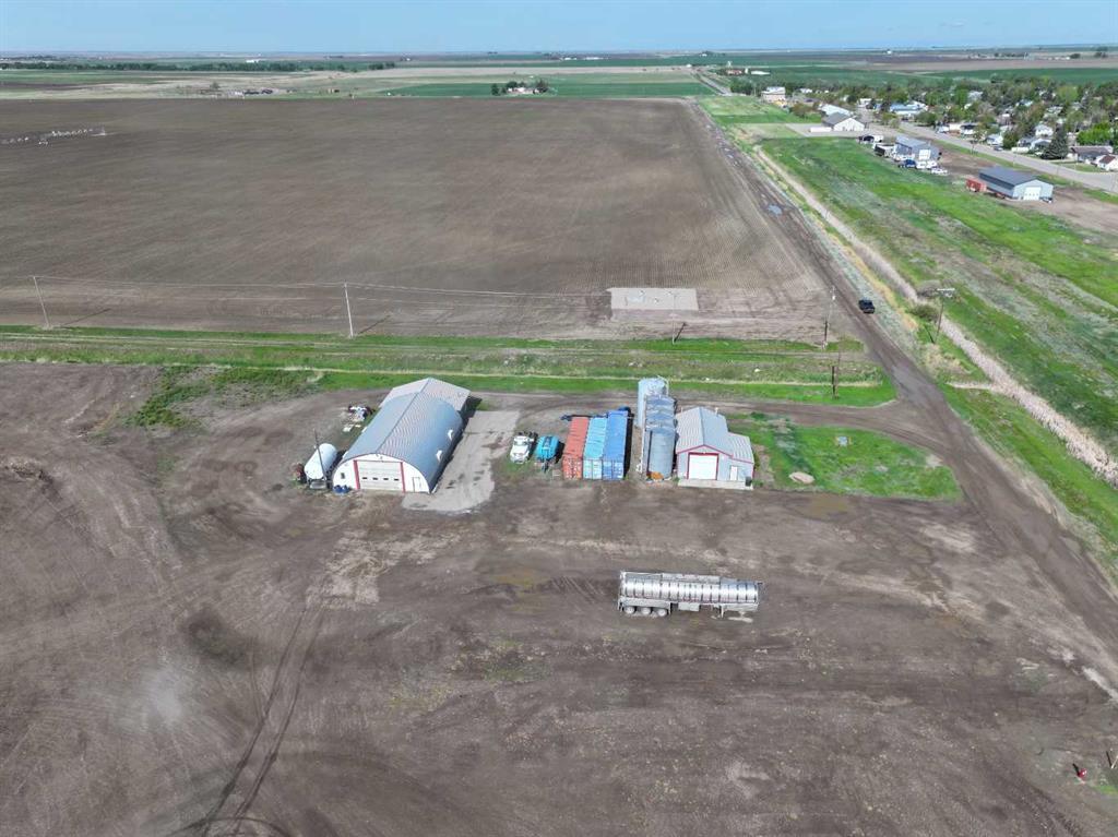 Excellent opportunity to own just over 4000sq.ft of commercial shop space on a large (almost 1.5 acre) lot in Vauxhall, AB. There are two buildings on the property, the larger 3080sq.ft building has a concrete floor, radiant tube heater, small office, and sink/toilet. The smaller 960 sq.ft building has a concrete floor and forced air heating. Large yard with many possibilities. The 3080sq.ft. building currently is rented out and tenant would love to stay. Tanks have only ever been used for water storage and can be removed if buyer does not want them.
