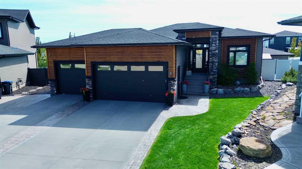 This stunning walk-out bungalow offers the perfect blend of luxury, functionality, and comfort—inside and out. Situated on a beautifully landscaped lot in desirable Vista, this home boasts incredible features including a triple attached heated garage with new epoxy flooring, a heated double detached garage, and an expansive 50' parking pad with 20' RV gate, 30-amp power, and space for all your toys. Step inside to a spacious open floor plan with rich hardwood flooring and a floor-to-ceiling stone fireplace. The chef’s kitchen is a true showstopper, complete with a butler’s pantry, large island, elegant two-tone cabinetry, quartz countertops, gas stove, and new appliances. The primary suite is a true retreat, featuring a double-sided gas fireplace, dual sinks, walk-in tiled shower, quartz counters, and a walk-in closet with laundry. Downstairs, entertain with ease in the spacious recreation and entertainment area, complete with wet bar, built-in sound system, in-floor heating, and walk-out access to a covered patio. The lower level is rounded out with two additional bedrooms and a full 4-piece bathroom. Outside, enjoy a fully fenced and landscaped backyard, ideal for relaxing or entertaining. Additional upgrades include a water softener, security system, and built-in color-changeable Christmas/Holiday lights controlled right from your smartphone. This home truly checks every box—move-in ready with all the extras you’ve been dreaming of!