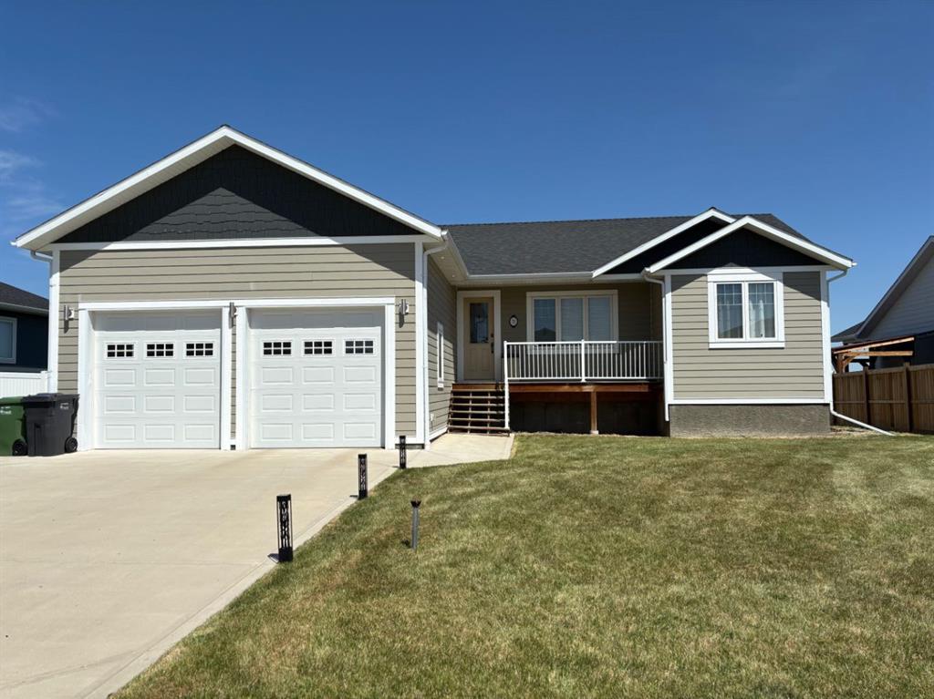 Custom QUALITY Home with potential for 2 more Bedrooms and 1 more Bathroom! This beautiful bungalow home features an open kitchen/dining/living room with 9' ceilings, an 8' front door, solid maple cabinets, granite, BlueStar gas stove, garden doors to the deck and so much more. The spacious primary bedroom has the most beautiful ensuite with a stand alone tube, tiled walk-in shower, double sink vanity, and a large walk-in closet. The main floor also has 2 more bedrooms and a 4 piece bathroom. Laundry is in its own separate room just off the primary bedroom and the back entrance from the garage. The basement is currently open with a large family room and lots of storage but has room for 2 more bedrooms and is roughed-in for another bathroom. The walls are finished with exterior smart board perfect for durability (let the kids play!). The garage boasts 14' ceilings and two 9'x9' overhead doors. It is insulated and drywalled and plumbed for heating. This 10 year old home has had little wear n tear and is in great condition. There are still some unfinished projects like flooring going down the stairs or developing the rest of the basement as needed but it is ready to make it your own! Copperleaf is a great new neighbourhood, come check it out!