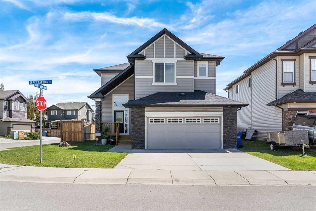 Welcome to this incredible fully finished home in the highly sought-after community of Drake Landing in Okotoks — known for its access to schools, scenic walking paths, and the beloved off-leash dog park just 300 meters away. Situated on a generous corner pie lot, this property offers plenty of outdoor space and RV parking potential off a paved alley and room to build A SECOND GARAGE — a rare find in town. Whether you’re a growing family, pet lover, or someone who loves to entertain, this home checks all the boxes. Step inside to a grand entrance and a thoughtfully designed main floor featuring a stylish kitchen with quartz countertops, stainless steel appliances, ceiling-height cabinetry, a charming powder room, and a convenient walk-through pantry that connects to the mudroom. It’s a smart and functional layout that makes everyday living feel easy. Upstairs, you’ll find a cozy bonus room, three bedrooms, and a well-appointed primary suite with a large walk-in closet and private ensuite. The entire upper level was freshly painted in 2021 and includes another full bathroom located just off the bonus room — perfect for family or guests. The fully developed basement, completed in 2021, offers bright, modern finishes and a magazine-worthy bathroom featuring custom tile and dual shower heads — plus a spacious bedroom perfect for guests or teens. Additional upgrades include air conditioning, a newer furnace (2019), a hot water tank (2021), and a heated garage (2021) — giving you peace of mind and comfort year-round. Homes in Drake Landing are always in demand — not just for the pathways, parks, and family-friendly vibe, but also because it offers quick access out of town, making your commute to Calgary fast and convenient. Don’t miss this one!
