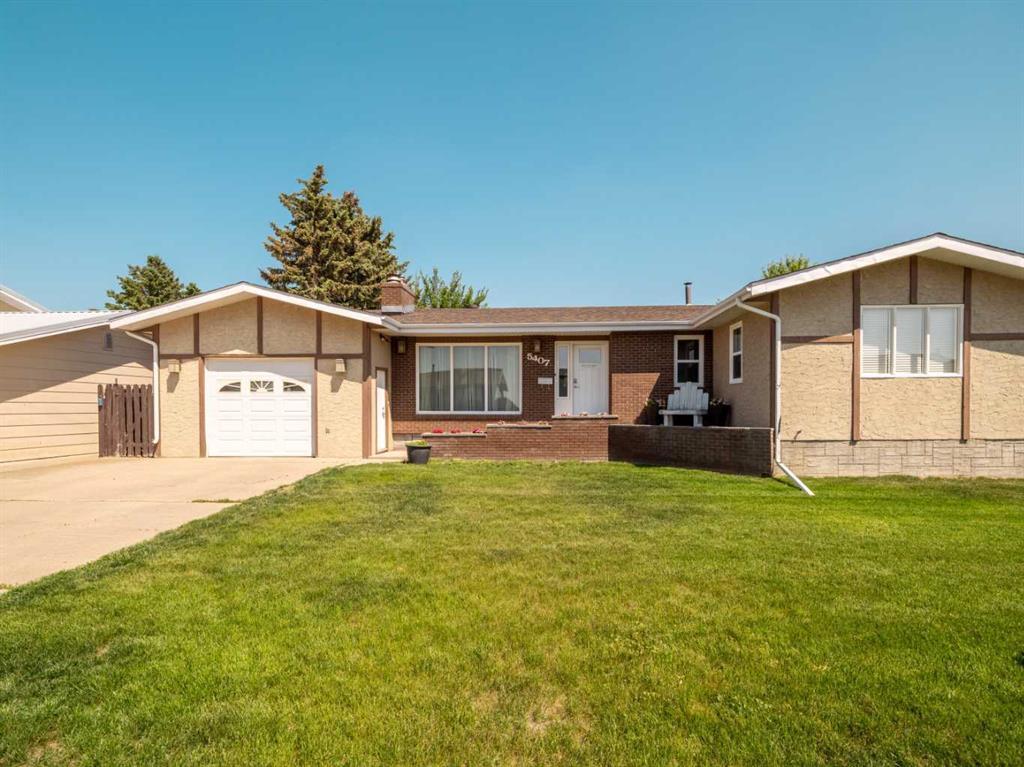 Step into the heart of the home — an open-concept kitchen, dining nook, and living room that’s both warm and welcoming. The kitchen features rich dark cabinetry, granite countertops, a dedicated baker’s counter, a large built-in pantry with pull-out shelves, and a lazy Susan, all designed for comfort and convenience. The cozy living room is centered around a wood-burning fireplace, creating the perfect spot to relax with family or host guests. The main floor includes three bedrooms and a 4-piece bathroom. The spacious primary bedroom is complete with 3-piece ensuite and a walk-in closet. Enjoy the ease of main floor laundry — ideal for anyone looking to minimize stairs in their daily routine. The fully finished basement offers two additional bedrooms, a 4-piece bathroom, a generous family room with a gas fireplace, and a summer kitchen (illegal suite), providing added flexibility for extended family or guests. Outside, a tiered and partially covered deck overlooks the expansive backyard — a great space for summer barbecues, entertaining, or letting kids and pets play. RV parking adds even more versatility. Recent mechanical upgrades include a newer hot water tank, and central air conditioning for year-round comfort. Located in a quiet, family-friendly neighborhood close to schools and parks, this home delivers space, value, and lasting quality. Don’t miss your chance to view this spacious and inviting property.