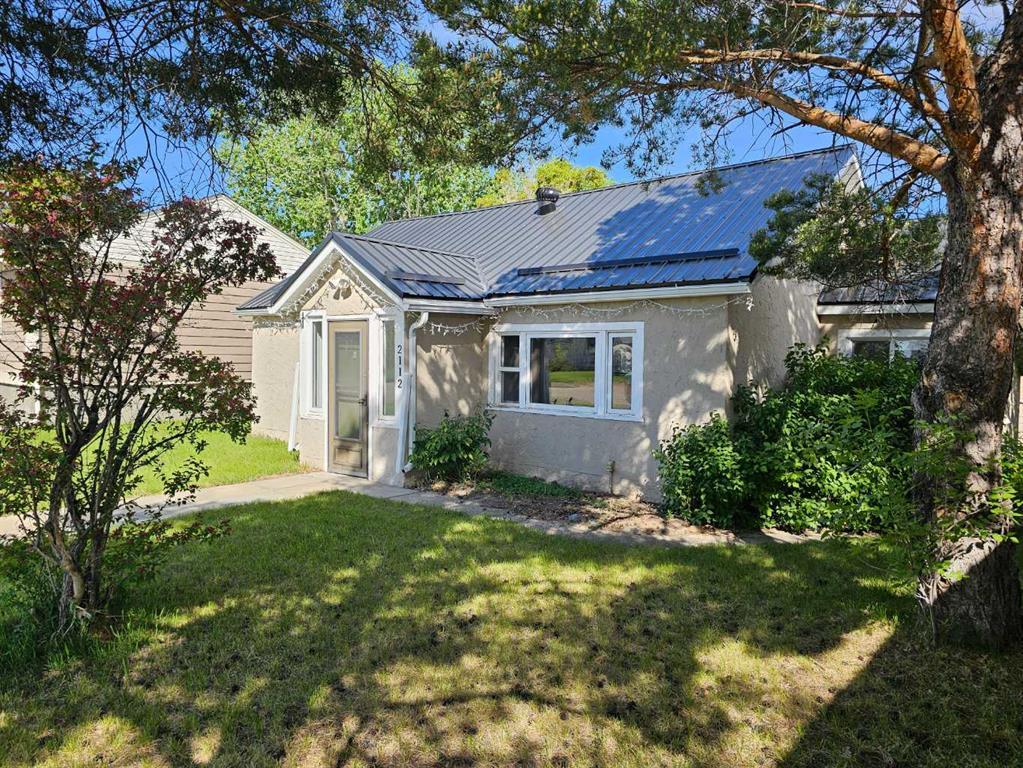 Originally built in 1948, this cozy 2-bedroom, 1-bathroom bungalow underwent a complete transformation in 2018 and renovated throughout. Offering 863 sq.ft. of thoughtfully designed living space, the home features spacious rooms, main floor laundry, and modern finishes. Perfect for first-time buyers, investors, or those looking to downsize, this home is truly move-in ready. Major updates in 2018 included new insulation, drywall, windows, plumbing, and 75% rewiring. The kitchen was completely redone with updated cabinetry, countertops, backsplash, and appliances. The bathroom, flooring, interior paint, trim, and hot water tank were also all replaced. Exterior improvements include new stucco, soffits, fascia, and most recently, a durable metal roof added in 2024. Situated on a generous 50' x 120' lot located between the highways, the property falls under M-DWT Mixed Use Downtown District zoning—offering flexibility and potential for future use. Affordable, stylish, and low-maintenance living—this is a rare opportunity you don’t want to miss!