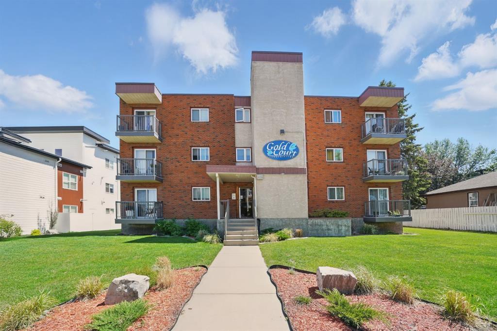Well maintained and landscaped - Gold Court - condominium in excellent location in beautiful downtown Red Deer! Cozy one bedroom condo that includes UNDERGROUND HEATED PARKING and IN-SUITE laundry! The location is ideal for those of you who like to be active! Close to swimming pool, arena, tennis courts, grocery stores, restaurants . . . PLUS beautiful Rotary park with lovely walking trails that you can bike or walk for miles! This unit has a south facing patio with privacy & a view to the trees. You will love the convenience of in-suite laundry & an assigned underground parking spot . . . .great for winter or keeping your car secure. The building with a elevator takes you to your parking spot underground (or a door on back of building gives you access); PLUS being on main floor you have easy access to your condo also through back door that has lovely east facing patio for anyone in building to enjoy. With the open living/kitchen area you will find it cozy but spacious . Plus those of you who like to relax in the tub with glass of wine at night, it has the perfect soaker tub! If you have a cat, one is allowed with board approval! Great location plus very affordable for first time buyers or revenue buyers . . .You don't want to miss out! Condo fees include: Common Area Maintenance, Heat, Maintenance Grounds, Parking, Professional Management, Reserve Fund Contributions, Sewer, Snow Removal, Trash, Water.