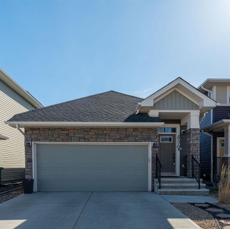 Welcome to this thoughtfully designed + fully developed bungalow in the desirable community of Bayview. With stylish finishes, a functional layout, and low-maintenance outdoor living, this home is perfect for those seeking comfort and convenience of one level living in a beautiful setting. Step inside to discover a bright, open-concept main floor highlighted by soaring vaulted ceilings and rich laminate flooring. At the heart of the home is a stunning galley-style kitchen, showcasing quartz countertops, stainless steel appliances, sleek modern cabinetry, and a spacious walk-in pantry. Whether you're entertaining or preparing everyday meals, this kitchen offers efficiency and elegance in equal measure. The dining and living areas are warm and inviting, enhanced by a striking wood feature wall and exposed ceiling beam that add character and charm. The bungalow-style layout makes main-floor living a breeze, with a serene primary suite featuring a walk-in closet and a stylish 3-piece ensuite. A second bedroom and full bathroom complete the main level. The fully finished basement provides even more versatile space, including a large recreation room, third bedroom, full 4-piece bathroom, dedicated laundry area, and generous storage. Outside, the maintenance-free backyard is designed for effortless enjoyment. With artificial turf, a pergola-covered deck, and a fully fenced yard, you can relax or entertain without the upkeep. A double attached garage adds everyday practicality and storage, while the location offers easy access to parks, pathways, the canal, and all the amenities Airdrie has to offer. Don’t miss your chance to own this beautifully finished, low-maintenance bungalow in one of Airdrie’s most sought-after communities!