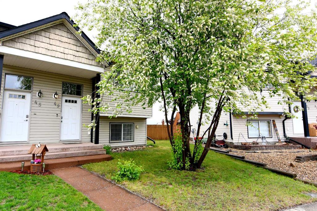FANTASTIC YARD AND DOUBLE DETACHED GARAGE! Plenty of room for a garden, recreation, or extra RV, boat, or vehicle storage. End unit townhome with large living spaces and big windows. U shaped kitchen with black appliances and raised eating bar. Interesting architectural details separate the kitchen from living room. Convenient 2 piece bath on main. Lower level has 4 pc bath with extra cabinet storage; and a 2 bedroom layout that provides a large Primary bedroom with double closets (Room for A KING SIZED bed). New Hot water tank in 2022. No Condo fees or rules and this yard is fenced and ready for a pet.