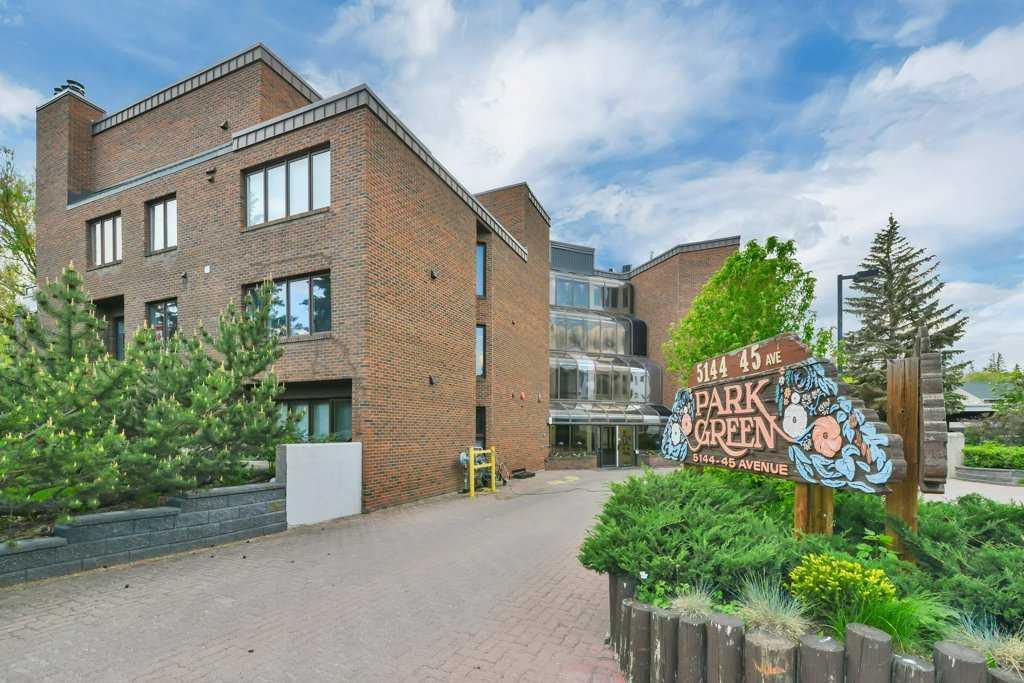 Elegant and well appointed 2nd level adult living condo unit now available in the sought after manicured subdivision of Woodlea Red Deer, AB. Park Green Condo complex on Coronation Park features many mature trees and a creek that flows through the Park. This upscale and spacious 1318 sqft condo unit shows extremely well with hardwood floors, quartz counter tops in the kitchen, stainless steel kitchen appliances, crown moldings, and a large primary bedroom with a 3pce ensuite. Other features include a breakfast nook, formal dining area, an electric awning for the balcony, in suite laundry and central air conditioning. This unit comes with one underground assigned heated parking stall and a storage room. Fireplace is deemed as "decorative only".
