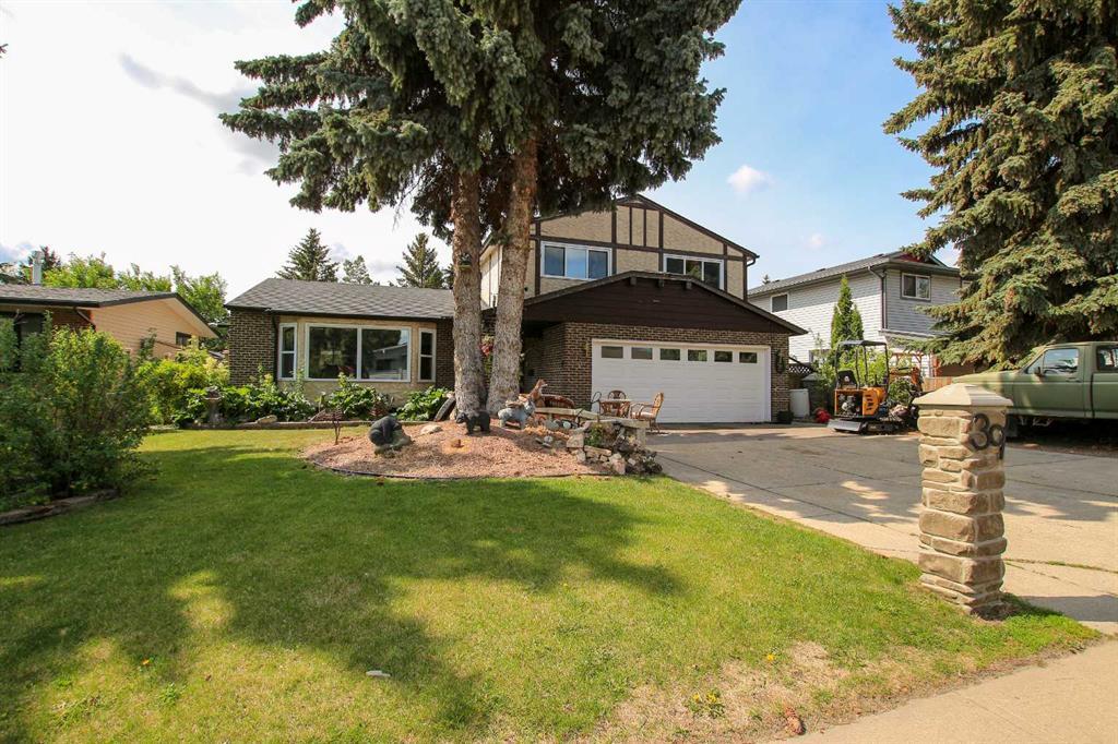 6 BEDROOM, 4 BATH 2-STOREY ~ 2,745 SQ. FT. ABOVE GRADE ~ SOUTH FACING BACKYARD W/MATURE LANDSCAPING, COVERED PATIO & ROOFTOP DECK ~ SEPARATE ENTRY ~ Mature landscaping offers eye catching curb appeal ~ Covered front entry leads to a large tile foyer with ample closet space, room for a bench and convenient garage access ~ The living room is a generous size, offers hardwood flooring and a large bay window overlooking the front yard ~ Archways lead to the formal dining room where you can easily host large gatherings ~ The kitchen offers a functional layout with ample cabinet and counter space, full tile backsplash, wall pantry, large south facing window overlooking the backyard and opens to a breakfast nook ~ Huge main floor family room has a wet bar, stone faced fireplace, separate rear entry, and sliding patio doors that lead to a large covered concrete patio, another large uncovered concrete patio, outdoor fireplace and the backyard ~ The laundry room has hot and cold taps plus built in cabinets for storage ~ 2 piece main floor bath ~ Main floor bedroom has a built in desk and a wall of built in cabinets ~ Spiral staircase leads to the upper level ~ The primary bedroom can easily accommodate a king size bed plus a sitting area, and features a stone faced fireplace, spacious walk in closet, 3 piece ensuite, and sliding patio doors to a south facing rooftop deck ~ 4 additional bedrooms located on the upper level share an oversized 4 piece bathroom with a jetted soaker tub and walk in shower with a bench ~ The basement offers a large family room with a brick fced fireplace, recessed lighting and a pool table, 3 piece bathroom with a large walk in shower, a spacious den, and ample storage throughout including a false door to a "hidden" room ~ Double attached garage plus an extra large driveway offer ample parking ~ The sunny south. facing backyard is landscaped with mature trees, shrubs and perennials, has a garden shed for storage, and is fully fenced with back alley access ~ Excellent location in desirable Anders Park with easy access to parks, playgrounds, schools, walking trails, shopping and all other amenities close by.