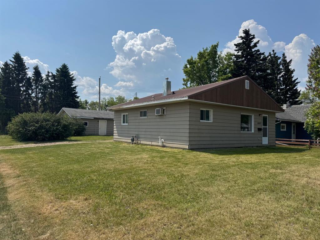 This home sits in a desirable family friendly neighborhood where there are three well-regarded schools that are just a short walk away plus enjoy the close proximity to the swimming pool, rink and parks. The kitchen provides a space to create those wonderful meals, plenty of cabinetry & counterspace and a double sink overlooking the grand-sized lot. You have 2 bedrooms, a large main floor laundry room and a 4 piece bathroom. Upgrades to appreciate over the years include hot water on demand, majority of windows, metal roof, electrical, and radiant heater in garage. Expand your entertaining area with this large deck to enjoy hours of relaxation, meals, friends & family. There is ample space for all your outdoor activities along with a double car garage granting you additional storage. WELCOME TO YOUR HOME!