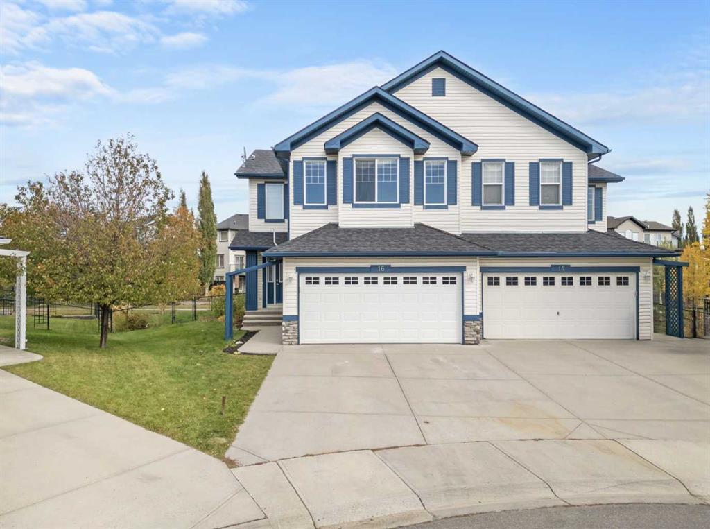 Welcome to this stunning 2-story half-duplex in the Family Friendly Community of Drake Landing in beautiful Okotoks! With just over 2100QFT of living space and attached double garage with extra parking space on the driveway this property is sure to impress! This SPECTACULAR home is located on a quiet cul-de-sac and situated on an oversized pie lot that backs onto a walking path that leads you to an off-leash dog park. Step into a bright and open spacious main floor plan and be greeted by vaulted ceilings that set the stage for the inviting ambiance that flows throughout. An arched entryway leads you to the spacious family room, where a striking 3-sided fireplace serves as a centerpiece for cozy evenings. The well-appointed kitchen is both stylish and functional, featuring a large island with a raised breakfast bar, a convenient corner pantry, brand new Samsung dishwasher and ample workspace. The adjacent dining room is bathed in natural light, thanks to an oversized window and sliding patio doors that open to the expansive backyard—perfect for indoor-outdoor entertaining. The main floor is complete with a practical mudroom/laundry area and a convenient 2-piece powder room. Upstairs, you'll find three generously sized bedrooms, a linen closet, and a versatile bonus room with an open-to-below concept overlooking the foyer. The luxurious primary suite impresses with double-door entry, an expansive layout, a walk-in closet, and a spa-like 5-piece ensuite with dual vanities, a soaker tub, and a separate shower. Endless possibilities await in the unfinished basement, offering a blank canvas for your dream space. Whether you envision a home theater, fitness studio, additional bedrooms, or a personal retreat, this versatile area is ready to be transformed to suit your lifestyle. The potential is yours to explore! Schedule your private tour today!