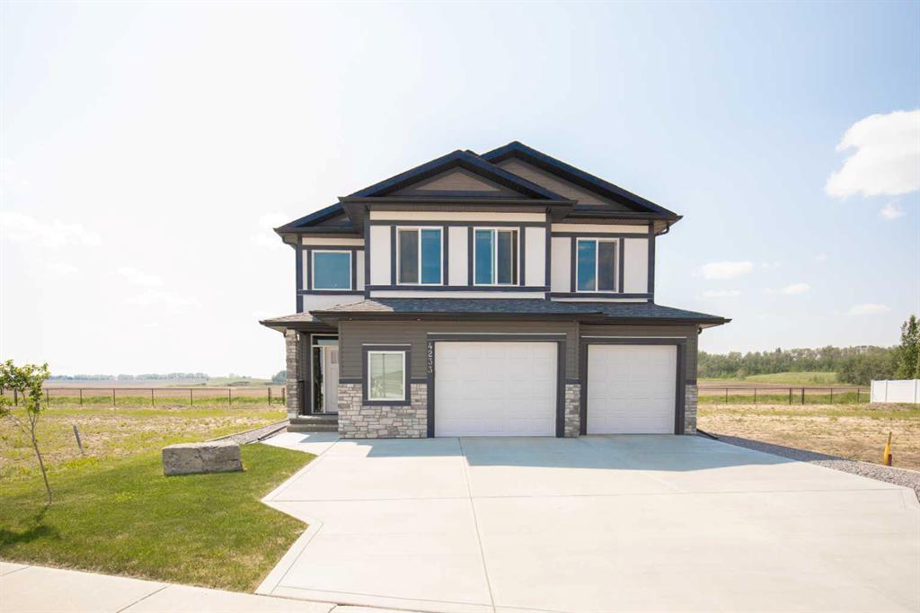 Welcome to a thoughtfully designed home that offers style, space and functionality. This stunning modified bi-level features high ceilings with a bright and open floor plan. A spacious layout perfect for your family. The kitchen is perfectly set up for everyday meals and entertaining. Featuring a gas cook top, wall oven, ample quartz counter space, a central island, and a spacious pantry. Custom built-ins surround the fireplace in the living room giving the space a cozy atmosphere. Just off the dining/kitchen area are two bedrooms with high ceilings and a 4 pc bathroom. Up the stairs and across the pedway, you'll find a private primary retreat complete with your own den or reading area, large en-suite with double sink vanity, jet tub and a large walk-in closet that includes a washer and dryer. The basement is fully finished with a large family room with a wet bar, a fourth bedroom and a full bathroom - ideal for guests or entertaining. Large attached garage with underfloor heat, floor drain and lots of storage space. Step outside to enjoy the covered west facing back deck with privacy louvers, and gas hook up for BBQing, perfect for those warm summer nights and sunsets — making outdoor living just as enjoyable as inside.