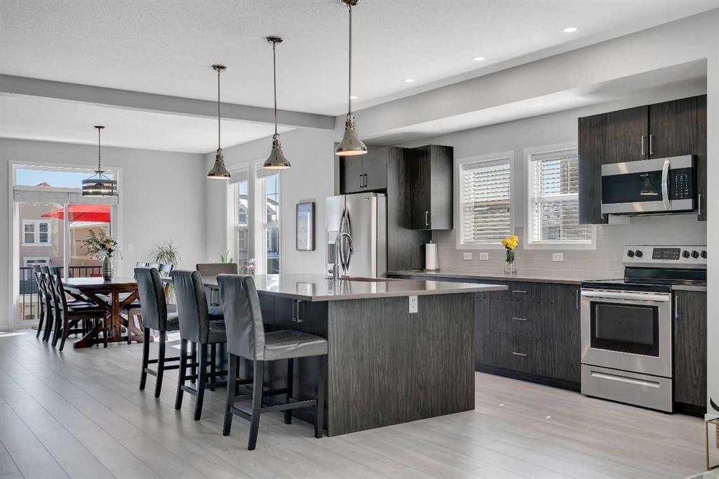 ONE OF THE LARGEST TOWNHOMES IN AIRDRIE *RARE 4 BED TOWNHOUSE - EXCEPTIONAL END UNIT FACING A COURTYARD* Welcome to this 4-bedroom, 4-bathroom end-unit townhome, offering just over 2,000 sq ft of beautifully finished living space in one of Airdrie’s most sought-after communities. With modern elegance, thoughtful functionality, and a prime corner location, this home is the perfect fit for families, professionals, and anyone seeking room to grow without sacrificing style or convenience. The entry-level/main floor is incredibly versatile and includes a bright bedroom and a 3-piece bathroom—perfect for a home office, guest suite, or a private space for a teen. You’ll also find a spacious storage area, access to utilities, and a convenient entry to the double attached garage. This level offers privacy and flexibility, ideal for multi-generational living or working from home. Upstairs, the spacious living room is anchored by a cozy fireplace, while the dining area flows seamlessly into the large gourmet kitchen—complete with stainless steel appliances, sleek quartz cabinets, ample counter space, and a large island ideal for hosting friends or gathering with family. Step through to the private patio that opens onto a beautifully maintained courtyard—your perfect setting for summer barbecues or a quiet morning coffee. A 2-pc bath is tucked away on this level for convenience. Upstairs, your private retreat awaits. The primary bedroom features a spacious walk-in closet and a luxurious ensuite with dual sinks and a sleek, modern design. Two additional bedrooms are generously sized, and the upper-level laundry room adds everyday convenience. The main bath completes the upper level, offering both comfort and functionality for a growing household. Situated in a vibrant, amenity-rich neighborhood, you’ll enjoy close proximity to parks, tennis courts, playgrounds, top-rated schools, and everyday essentials. Whether you're relaxing at home, entertaining guests, or exploring the community, this townhome truly has it all., all pets must be approved and under 25lbd