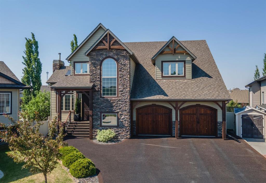 This stunning custom built home offers nearly 4000 square feet of beautiful high end finishes, all sitting on an extensively landscaped and private pie shaped lot inside of a quiet cul-de-sac in Vanier. Built to exacting standards and maintained in pristine condition, the property features two heated garages: a 24x44’ triple tandem attached with epoxy flooring and floor sumps under each bay, and a 24x28’ detached shop with vaulted ceilings and RV parking off the paved back alley. The exterior is finished in Hardi plank siding with timber frame accents, and the home showcases the best in outdoor living with a 54-foot covered upper deck with Duradek flooring, plus a fully covered lower walkout patio that steps into a private backyard oasis. Inside, the craftsmanship stands out with 9’ ceilings, solid fir casings and baseboards, 8’ exterior doors, hardwood and tile flooring, and a vaulted living room with skylights and a stone-faced wood stove. The maple kitchen cabinetry is paired with updated quartz counters, updated backsplash, corner pantry, and stainless steel appliances, and the adjacent dining area offers room for a large table to accommodate a large family or entertaining with friends. A main floor den/bedroom and a 3-piece bath with shower off the garage entry complete the main floor space. Upstairs offers four bedrooms, including a spacious primary suite with a massive walk-in closet and a luxury ensuite featuring a clawfoot soaker tub, dual sinks, large shower, and a private water closet. Three generously sized kids room share a 4 pce bath, and the upper floor laundry room includes built-in cabinetry and a sink. The walkout basement features cozy in-floor heat, a huge wet bar with wine and bar fridges, entertainment area, a sixth bedroom, and a 3 pce bath with a custom tile shower. This home shines with pride of ownership both inside and out and must been seen to be fully appreciated!