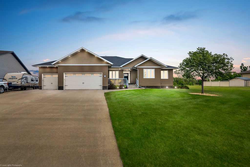 Welcome to this exceptional custom bungalow located in the quiet community of Viking, Alberta. Backing onto green space and the 9th hole of the Viking Golf and Country Club, this beautifully crafted home offers over 2,200 sq ft on the main floor with thoughtful design, premium finishes, and quality construction throughout.