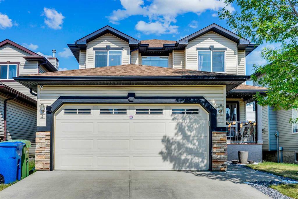 PRICE REDUCED.This charming and well-maintained family home have excellent location, located in Luxstone, 2 minutes walk to Nose Creek Park ,4 minute walk to midtown lake and 5 mint drive to Airdrie Downtown. boasts 2165 square feet of living space, perfect for your family's needs. The house includes three bedrooms, 2.5 baths, and an unfinished basement waiting for your creative touch. You'll appreciate the convenience of the double attached front-drive garage, which easily accommodates two cars and all your family's equipment. The upgraded overhead door with windows provides additional natural light. Enter through the welcoming front deck into the open living and dining areas, which lead to a spacious kitchen featuring laminate countertops, custom-designed backsplash, composite sink with garburator, microwave and stove (replaced in 2020). This house has central air condition. The adjacent cozy family room offers a gas fireplace and ample sunlight streaming in through large windows that overlook the fully-fenced backyard. Water Tank and and AC is on lease. Monthly payment is $144. If the buyer wants to assume the lease. He can proceed. Security Cameras are all included in the purchase price. French doors lead off the dining nook to a balcony where you can relax or keep an eye on the kids playing at backyard. An office on the main floor provides privacy and plenty of natural light. All bedrooms are located upstairs, including a spacious primary bedroom with a large private ensuite featuring a corner jetted tub and a walk-through closet. The upstairs is fully carpeted to ensure a peaceful environment.
