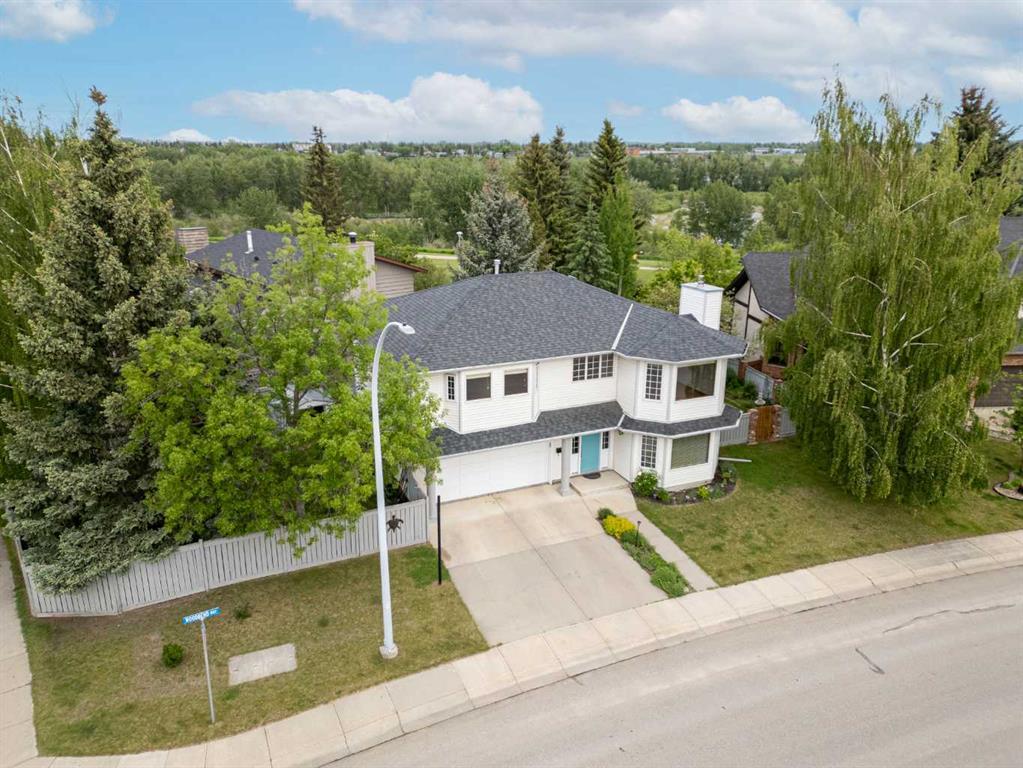 HUGE PRICE REDUCTION! Welcome to this gorgeous fabulous raised bungalow on a large corner lot, that has views over the Sheep River escarpment. The floorplan on this home is ideal for multi generational living or for a home run business as the main living areas are on the upper floor. On the entrance level is huge family room with a gas fireplace with brick surround, this room has a lovely bay window that overlooks the front yard. On this level is a large bedroom #4 or home office and a half bath. Completing this floor is a large laundry room with sink and built in cabinets and a den space. On the upper level is huge living/dining room with lovely hardwood floors. The kitchen/eating area has lots of cabinets, a pantry and a great nook area with doors leading onto the deck. Relax on the deck and enjoy the far reaching views towards the Sheep River Valley. On this level there are 3 good sized bedrooms, the primary bedroom features a 3 piece ensuite with tiled shower and a walk in closet. The other 2 bedrooms both have bay windows and one has a built in desk. A 4 piece bathroom completes this level. The fabulous yard features mature trees, a huge block patio with firepit, flower beds and lawned areas - plenty of play space for the family or pets! View 3D/Multi Media/Virtual Tour!