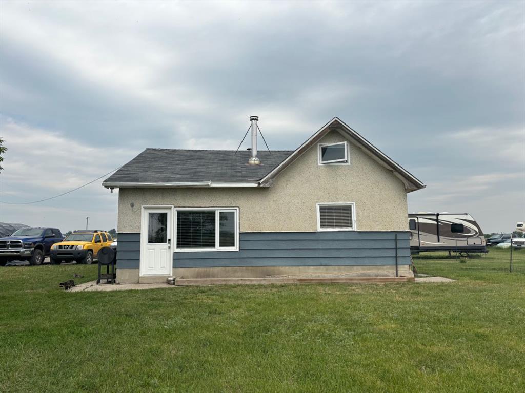 10.67 Acres just outside the Town of Magrath! This is a great opportunity to own a property close to what the community has to offer but still in the county. It is an older home but has had lots of upgrades and updates including all new plumbing, electrical on the main floor, a complete new kitchen including new insulation in the walls, a complete new bathroom and so much more. The upper level doesn't meet the RMS requirements but adds an extra 480 sq/ft and 3 bedrooms. The living room is currently being used as a bedroom and the dining room is currently being used a living room and one of the bedrooms upstairs is currently being used as a TV room. There is a basement under a portion of the home and it houses the furnace and water tank and is great for storage. The yard is beautiful with bushes and trees for privacy and shade. In a good year there might be a possible 18-23 bales of hay. There is a dugout for watering and a natural drainage ditch that runs through the property. There is so much potential for this beautiful acreage, come check it out!