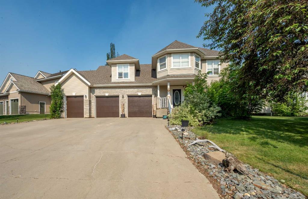 GREAT WEDGEWOOD FULLY DEVELOPED HOME WITH COUNTY TAXES!!! This home features 4 bedrooms and 3 1/2 bathrooms with 2184 sq ft. Triple heated garage with access to the backyard from the rear of the garage and extended driveway. The kitchen has been updated with granite countertops, professionally painted cabinets, stainless steel appliances, white subway tile backsplash, floating shelves, new light fixtures, a corner pantry, and tile floors. The dining area has garden doors that lead out to the aggregate patio area. The formal living room has laminate floors, wainscotting, and a gas fireplace. There is a 2 piece bathroom and a large laundry room with a barn door that completes the main floor. The upstairs has a huge bonus/TV room with room for gym equipment and a games area, the primary suite has a huge window, a full ensuite with a jetted tub, a separate shower, and a walk-in closet. Bedrooms 2 & 3, and a full main bathroom complete the upper level. The basement has a family room, bedroom 4, 3 peice bathroom with access to the storage/ utility room. The backyard is fully fenced, landscaped, hot tub, firepit area, some trees/bushes, and raised planter boxes. Book your showing today!!!