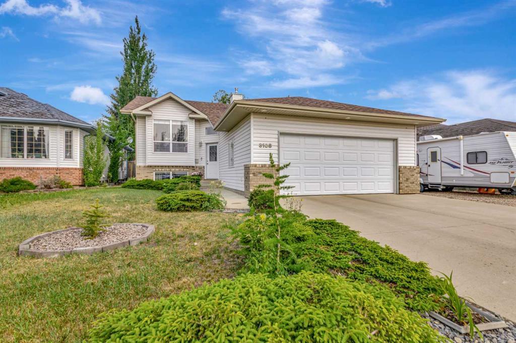 This 1,168 sq ft bungalow is ideally located near schools and offers a bright, open layout with vaulted ceilings and hardwood flooring in the living room and hallway. The main floor includes three bedrooms, two bathrooms, and a cozy kitchen with built-in nook seating and a corner sink overlooking the beautifully landscaped backyard. The finished basement adds two more bedrooms, bathroom, family room with gas fireplace, and a games room—perfect for relaxing or entertaining. Outside features RV parking, a garden shed, and a double attached garage. A great fit for families or anyone looking for a comfortable, well-rounded home!