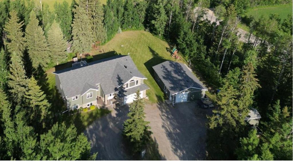 A Private Forest Retreat, just Minutes from Rocky Mountain House! Nestled on 2.5 acres of beautifully treed land, this custom-built modified bi-level home offers unparalleled privacy and a park-like setting that’s perfect for everything from peaceful living to hosting a dream wedding. Surrounded by mature trees and mountain views, you'll enjoy a true forest atmosphere just less than 5 minutes from town amenities. Step into the grand tiled foyer with a decorative niche and direct garage access. The main living area features gleaming hardwood floors, vaulted ceilings with recessed lighting, and oversized windows with custom blinds that flood the space with natural light. A cozy wood-burning fireplace anchors the spacious living room, which flows effortlessly into the open-concept dining area, chef’s dream kitchen is complete with a gas stove, pantry, eating bar with a shimmering grand piano for ambiance. The main floor also offers: A private office with French door. Two spacious bedrooms, a luxurious primary suite with 3-piece ensuite (featuring a 2-person shower with bench), walk-in closet with custom organizers, and private access to the deck. A 4-piece main bathroom with soaker tub. A large laundry room with abundant cabinetry, crafting space, a sink, and a bright window. The bonus room above the garage adds 450 sq ft of flexible living space—ideal as a theatre room, or additional family area. Enjoy mountain views, a gas fireplace, A/C, and even a nook ready for a mini bar or toy storage. The walkout basement features 9’ ceilings, in-floor heating, and: 4 additional bedrooms/a music room/ bedroom next to a separate basement entrance (ideal for a home business or 6th bedroom). Massive rec room that previously housed a pool table, guest bath + a thoughtfully designed triple-section bathroom for teens with dual sinks, a separate shower area, and a private toilet room. Tons of storage space throughout. Outside, entertain or unwind on the multi-tier, low-maintenance deck with hot tub, accessible from the dining area, primary bedroom, and walkout basement. There’s even a covered under-deck storage area for your mower and toys. For hobbyists or business owners, the 40’x28’ heated shop (2008) is fully plumbed with hot/cold taps, a floor drain, 18’ door, 220V wiring, in-floor heat, 3-piece bathroom, kitchen area, and laundry hookups—ready for anything from car restoration to running a home-based operation. Additional highlights: Central vac with kitchen and entry in-floor sweeps, Drilled well and 2-stage septic tank and field system, Water softener and on-demand hot water system (replaced, 2023). Roundabout driveway with ample parking for RVs, and multiple vehicles. Upgraded shingles 2024. Basketball/pickleball court, firepit, wood shed, and forest trail. Zoned Country Residential for privacy yet ideal for entertaining. This one-of-a-kind property offers the best of both worlds—serene country living with quick access to town conveniences, Crimson Lake and golfing.