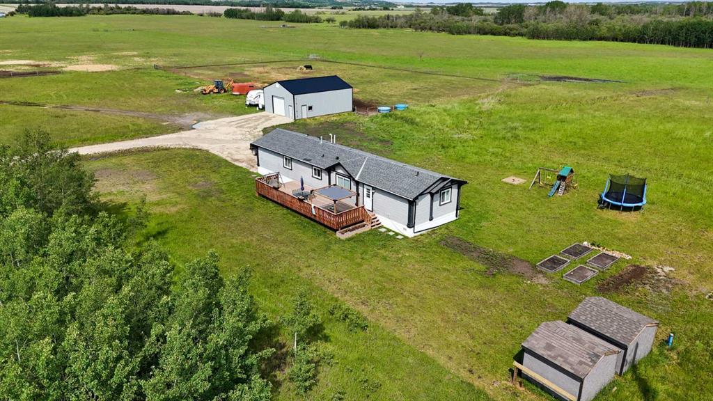 An absolute dream for cattle farmers, this fully functional and thoughtfully laid-out property offers the perfect blend of productivity, comfort, and rural charm. Spanning 149.6 acres and zoned AG, this parcel is ideally set up for livestock with lush, green pastures that have been fully fenced and cross-fenced into three separate grazing sections—allowing for effective rotational grazing and land management. The heart of the operation is a solar-powered, motion-sensor live waterer connected to a generous 20x30 meter dugout, ensuring a sustainable and efficient water supply for your herd. The land easily supports 30 pairs throughout the summer thanks to high-quality native grasslands and thoughtful pasture maintenance. A spring runoff flows through the middle of the property, along with a beautiful natural tree buffer that provides shelter and wind protection—ideal for keeping livestock safe and comfortable in every season. Infrastructure is a standout, featuring a 30x40 radiant heated SHOP with a sub-panel for additional electrical needs, gravel floor, and a built-in stable connected directly to the pasture. Whether for calving, sorting, or storing feed and equipment, this shop is versatile and built to handle the demands of ranch life. A freshly drilled water well was added during the installation of the 2016 20'x76' MINT-CONDITION MOBILE HOME, which also features a 500-gallon propane tank, new furnace and pressure tank and 2016 septic system with pump-out. The home itself is spacious and bright with 1,520 sq. ft., offering 4 bedrooms, 2 bathrooms, and a wide open-concept living space. The kitchen is a chef’s delight with stainless steel appliances, bar seating, a pantry, soft-close cabinets, tile backsplash, and a reverse osmosis water system. The primary suite includes a walk-in closet, ensuite with dbl sink vanity + a shower, and a pasture-view window overlooking your cattle from bed—rural luxury at its finest. The smaller of the 3 spare bedrooms is located next to the primary suite, while at the far end of the mobile is the other 2 spare bedrooms and a full 4 pc bathroom. Step outside onto the west-facing full-length deck, perfect for evening sunsets, complete with a pergola included. Two 10x10 sheds, raised garden beds already planted with potatoes, beans, and carrots, plus an abundance of raspberries and Saskatoon berry bushes line the property, offering true homestead potential. Just 5 minutes to Wembley and 10 minutes to Beaverlodge, this well-located, fully equipped farm is truly TURNKEY and ready for your herd. A rare opportunity for serious cattle producers or those looking to step into a ready-made operation. Book your private tour today—this is the cattle farm you’ve been waiting for!