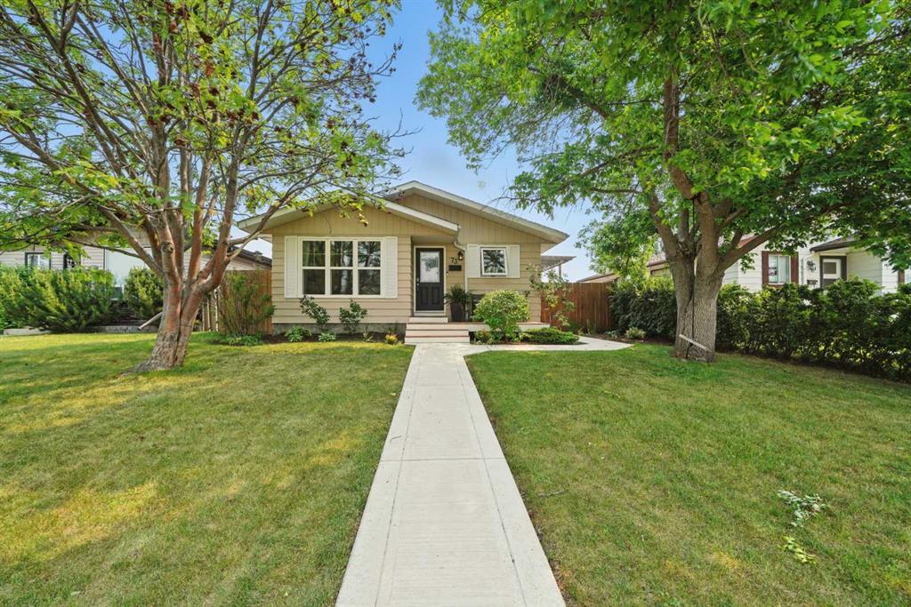 A fully developed bungalow with a detached double car garage. The curb appeal is accented by the newer poured concrete walkway and updated front veranda. The tiled front entryway leads you to the living room, which features oak hardwood floors and three windows for nice natural light. Painted kitchen cabinets are accented by a stainless steel sink, stainless steel appliances (newer around 2016) and oak hardwood floors that run through to the eating area that has a wallpaper feature wall & updated lighting. There are three bedrooms upstairs with carpet, electric blinds and fans. The basement has a family room with a wood panel feature wall, a 4th bedroom (window may not meet egress) and a 3 piece ensuite. The laundry room has a basin sink for your convenience and a newer washer and dryer. There is a two-tier deck with a gas line for your bbq and a pergola, RV parking and a dog run along the side. The furnace and shingles were replaced around 2005. All main floor windows have been replaced with vinyl windows. A fantastic location just steps away from parks.