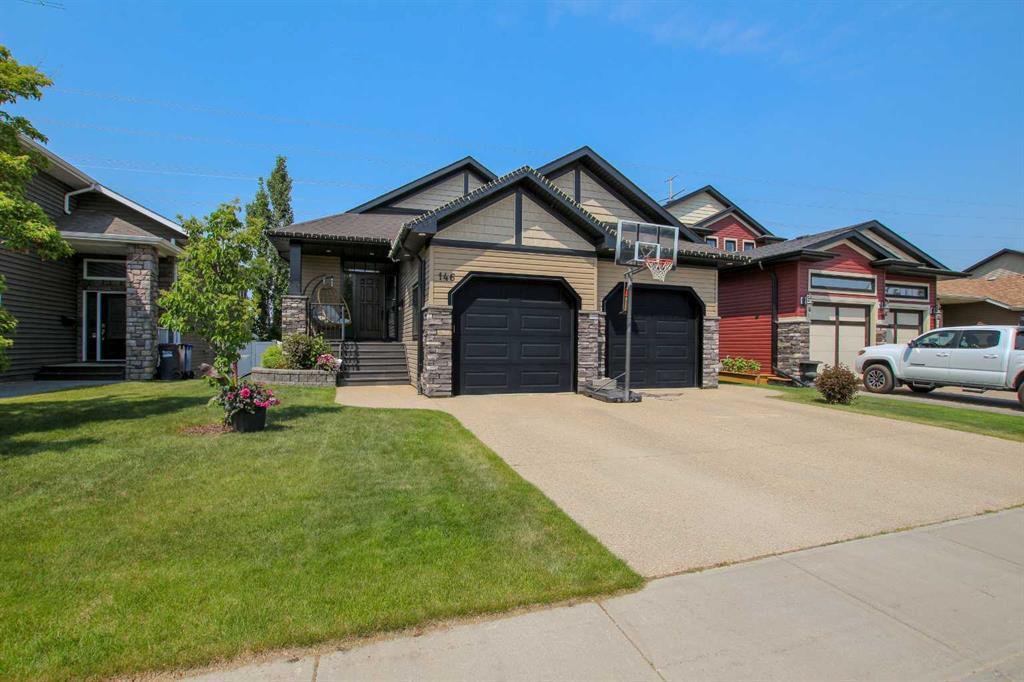 CUSTOM BUILT WALKOUT BUNGALOW LOADED WITH UPGRADES ~ 3 BEDROOMS + OFFICE, 3 BATHROOMS & OVER 1320 SQ. FT. ABOVE GRADE ~ BACKING ON TO WALKING TRAILS & GREEN SPACE WITH UNOBSTRUCTED VIEWS ~ Pride of ownership is evident in this well cared for home ~ Covered front veranda welcomes you and leads to a spacious sun filled foyer with a large coat closet and convenient access to the attached garage ~ Open concept main floor layout complemented by high ceilings and hardwood flooring offers a feeling of spaciousness ~ The living room features 12 ft. coffered ceilings, floor to ceiling windows with unobstructed views and a stunning gas fireplace with custom millwork and a tile surround ~ The kitchen offers an abundance of wood cabinets, granite counter tops including an island with an undermount sink, an eating bar with pendant lights above , full tile backsplash. walk in corner pantry, built in wall pantry, tons recessed lighting and stainless steel appliances ~ The dining space can easily host a large gatherings and offers garden door access to the massive deck featuring a BBQ gas line, aluminum railings, frosted panels for privacy and beautiful views ~ The private owner's suite can easily accommodate a king size bed plus multiple pieces of large furniture, has a massive walk in closet with built in organizers and a spa like 5 piece ensuite with dual sinks, air tub, separate shower and a water closet ~ 2 piece main floor bath with access to the conveniently located laundry closet ~ Frosted French doors lead to the office, thoughtfully finished with built in shelving and a closet ~ Open staircase leads to the walkout basement offering in floor heat, 9 ft. ceilings and large above grade windows ~ The family room offers tons of space with a cozy media space featuring built in shelving, a stone faced fireplace, wet bar with wood cabinets, stone counters, tile backsplash and under cabinet lighting, and still plenty of space for a games area ~ Garden door access off the family room leads to a covered patio and backyard ~ Two large bedrooms are perfect for teenagers or guests, both with ample closet space ~ 4 piece bathroom with an oversized vanity with stone countertops and a large linen closet ~ Other great features include; Newer Hot water Heater, newer central air conditioning, fresh paint throughout, newer garage heater, wired for sound with speakers throughout, central vacuum with attachments, non smoking home, tons of built in's and custom millwork throughout ~ The heated double attached garage has a floor drain, dehumidifier, hot and cold taps with a wash tub, built in shelving, man door to the side yard and an aggregate driveway ~ The backyard is landscaped, has a composite shed, is fully fenced with vinyl fencing and has direct access to the green belt and walking trails behind ~ Excellent location in a desirable neighbourhood, close to walking trails, parks, playgrounds, shopping, with easy access to all other amenities.