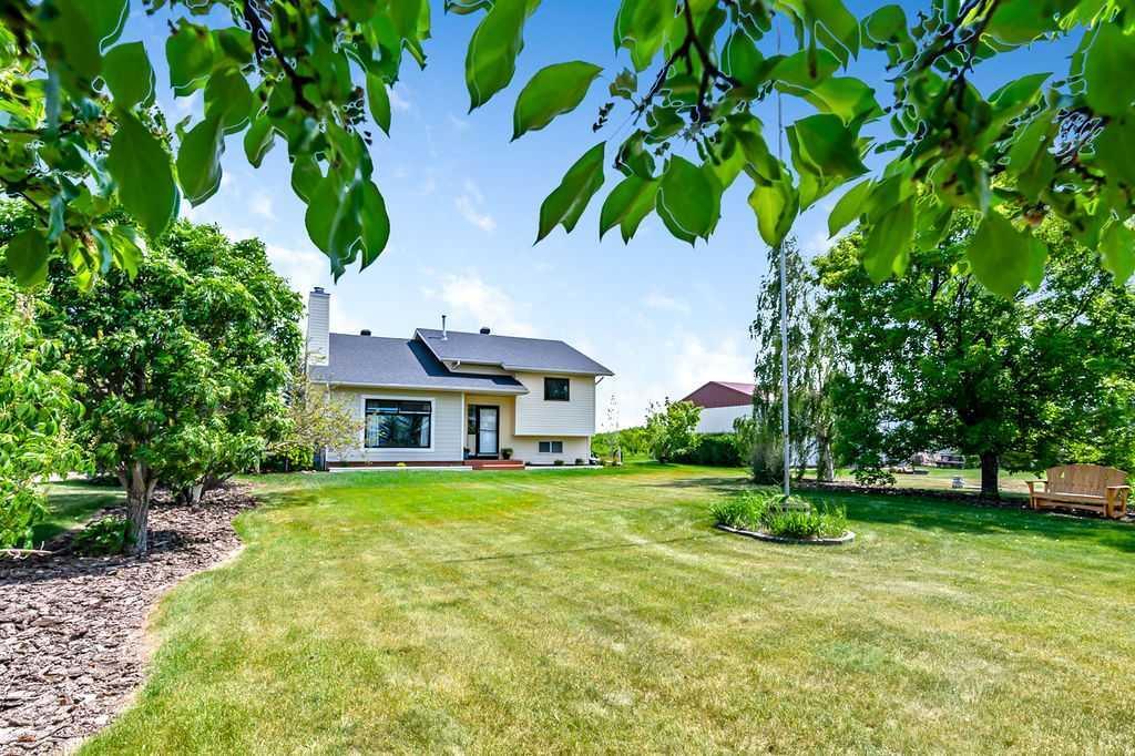 Have you been dreaming of acreage living, where the pace is slower, the views are endless, and there’s room to roam? This special property is the perfect opportunity to enter the acreage market without compromising charm, functionality, or affordability. Follow the long, tree-lined driveway and prepare to fall in love. Nestled among mature trees, this adorable home offers exceptional privacy and breathtaking Alberta views, with the majestic Rocky Mountains to the west, open prairies all around, and blue skies stretching as far as the eye can see. The home welcomes you with a unique and inviting layout. Enter into the foyer and notice the living room with its soaring ceilings and upgraded picture window framing those iconic views. Also notice a cozy stone wood-burning fireplace that instantly makes you feel at home. Overlooking the living room is a quaint kitchen with painted cabinets, a generous pantry, a gas stove, and a stainless steel fridge. Every window offers a new perspective of the natural beauty that surrounds you. The primary bedroom features a large walk-in closet and plenty of space to unwind. A second bedroom offers comfort and versatility. The partially finished basement includes a bright and spacious family room with large windows, a third bedroom with a walk-in closet, a three-piece bathroom, and ample storage, including a cold room and a utility/laundry room with a nearly new washer and dryer. This property is beautifully set up for anyone wanting to embrace country life. There are two horse shelters and fenced pasture for your four-legged companions, a chicken coop for fresh eggs, and a greenhouse for the green thumb in the family. The shingles were replaced in 2012 with 50-year shingles, offering peace of mind for decades to come. Outdoor living is enchanting, enjoy the expansive deck, the manicured yard, a variety of mature trees and bushes, and the sweet songs of birds that call this special place home. The heated 26'x30' garage/shop is a standout feature with high ceilings, insulation, drywall, great lighting, 220 power and an attached storage shed that’s perfect for your lawn equipment or tools, keeping your workspace tidy and efficient. Whether you’re looking to start your acreage journey or find a forever place to call home, this property offers the rare combination of charm, functionality, and breathtaking natural beauty. Ensure you allow yourself enough time to enjoy this property, as once you arrive you will not want to leave.