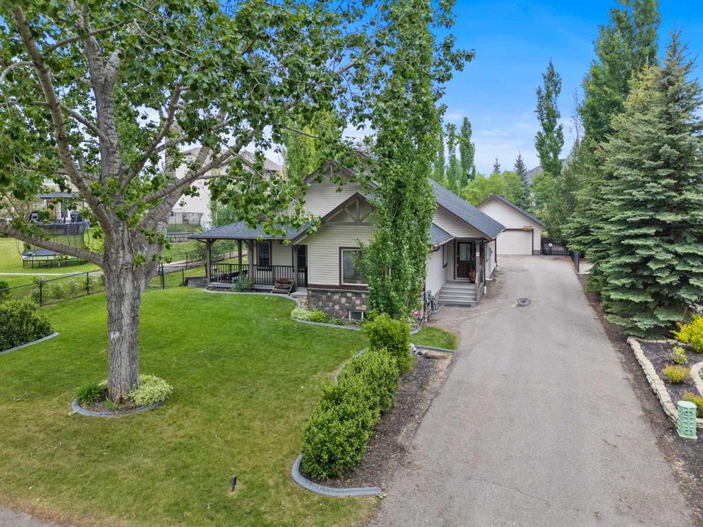 With over 3683 sq.ft. of living space, this charming bungalow in Air Ranch of Okotoks is nestled on a picturesque 0.3-acre lot, directly across from the Okotoks Wildlife Preserve and Walking Path. Step out your front door and enjoy tall trees, peaceful walking trails, nature views, and the serenity of one of the town’s most sought-after communities. Thoughtfully designed with added touches such a crown mouldings and hardwood floors, the main floor offers 1770 sq. ft plus a three-season sunroom. It includes a spacious primary bedroom with ensuite, a generous home office, family room and formal dining space. The heart of the home is the bright, expansive kitchen that flows seamlessly into the sunroom—a standout feature you’ll fall in love with for morning coffees, evening chats, and everything in between. The fully finished basement with newer carpets adds incredible versatility, with two additional bedrooms, a large rec room, flex space perfect for a games room, and a wet bar with full-size fridge—all ideal for entertaining guests or multi-generational living. Step outside to your private backyard oasis, filled with mature trees, vibrant perennials, thoughtfull landscaping and peaceful privacy. The oversized double detached garage is heated and provides ample space for vehicles, hobbies, or storage. The yard was professionally landscaped by KC landscaping and features a custom flowerbed/retaining wall along the swale, sandstone rock decor along the rear, and french drains. This home is full of character, history, and warmth—and offers the rare combination of nature, space, and classic design all in one. Come see what life feels like in one of Okotoks' most iconic addresses: 1 Ranch Road.